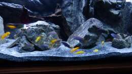 33 Mbunas und 5 petricolas auf 450 Liter Bruttovolumen sind schon eine echte Hausnummer, zumal die Fische - den Fotos nach - noch nicht ausgewachsen sind. Da bin ich auf die weitere Entwicklung gespannt, zumal ich einen ?berbesatz auch mal im Hinterkopf hatte.
