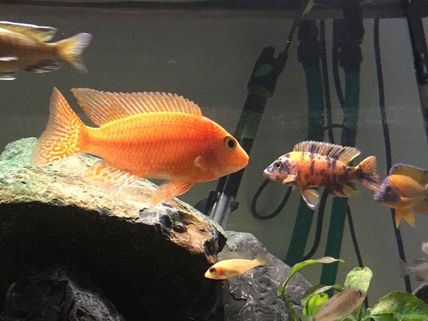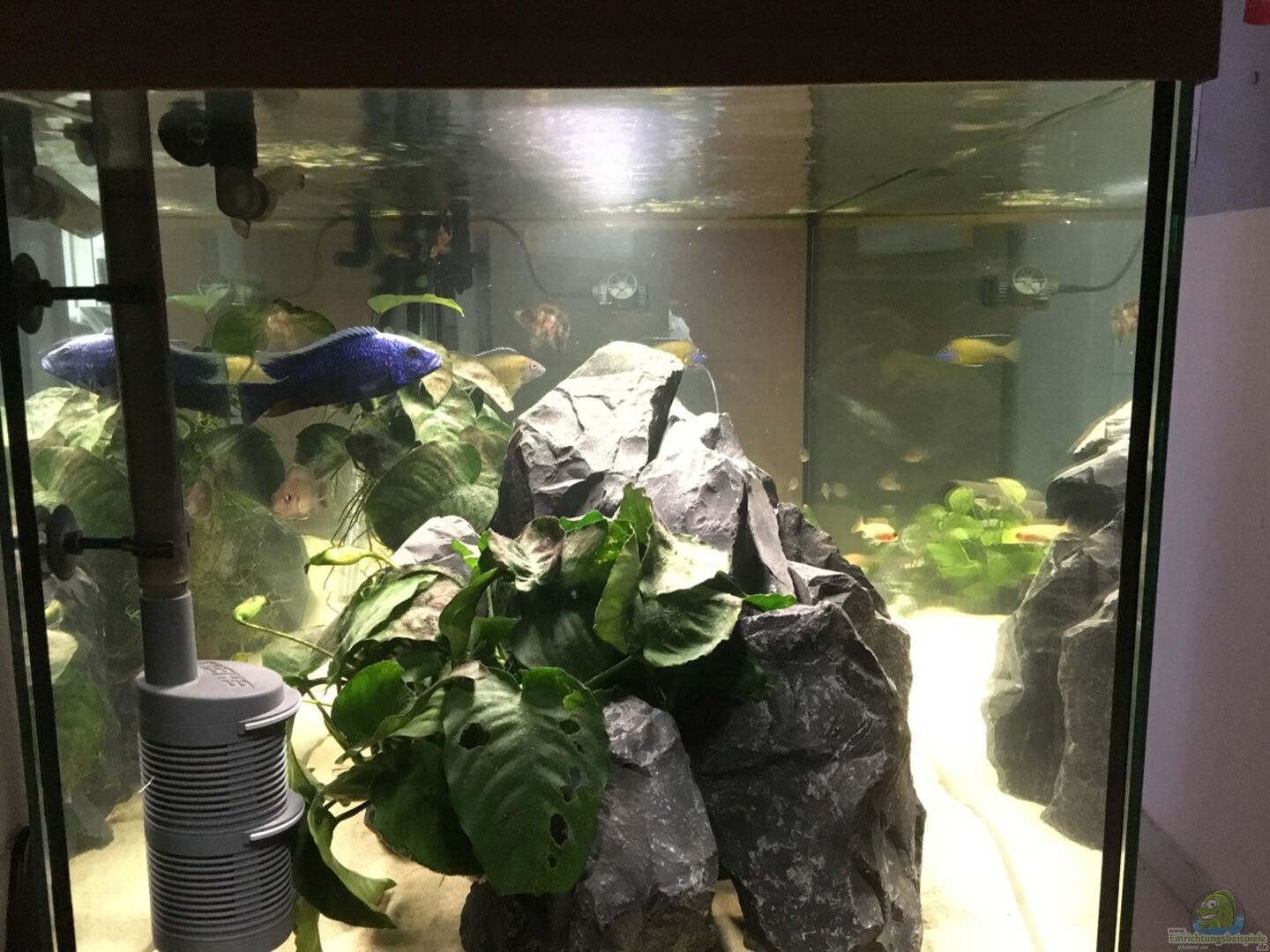 Die Einrichtung scheint dir sehr gut gelungen, allerdings scheint mir, dass diese eher auf Mbunas ausgelegt ist. Beim Besatz sehe ich au?erdem Verbesserungspotential, denn für den ausgewählten Besatz ist dein Aquarium aus meiner Sicht deutlich zu klein.