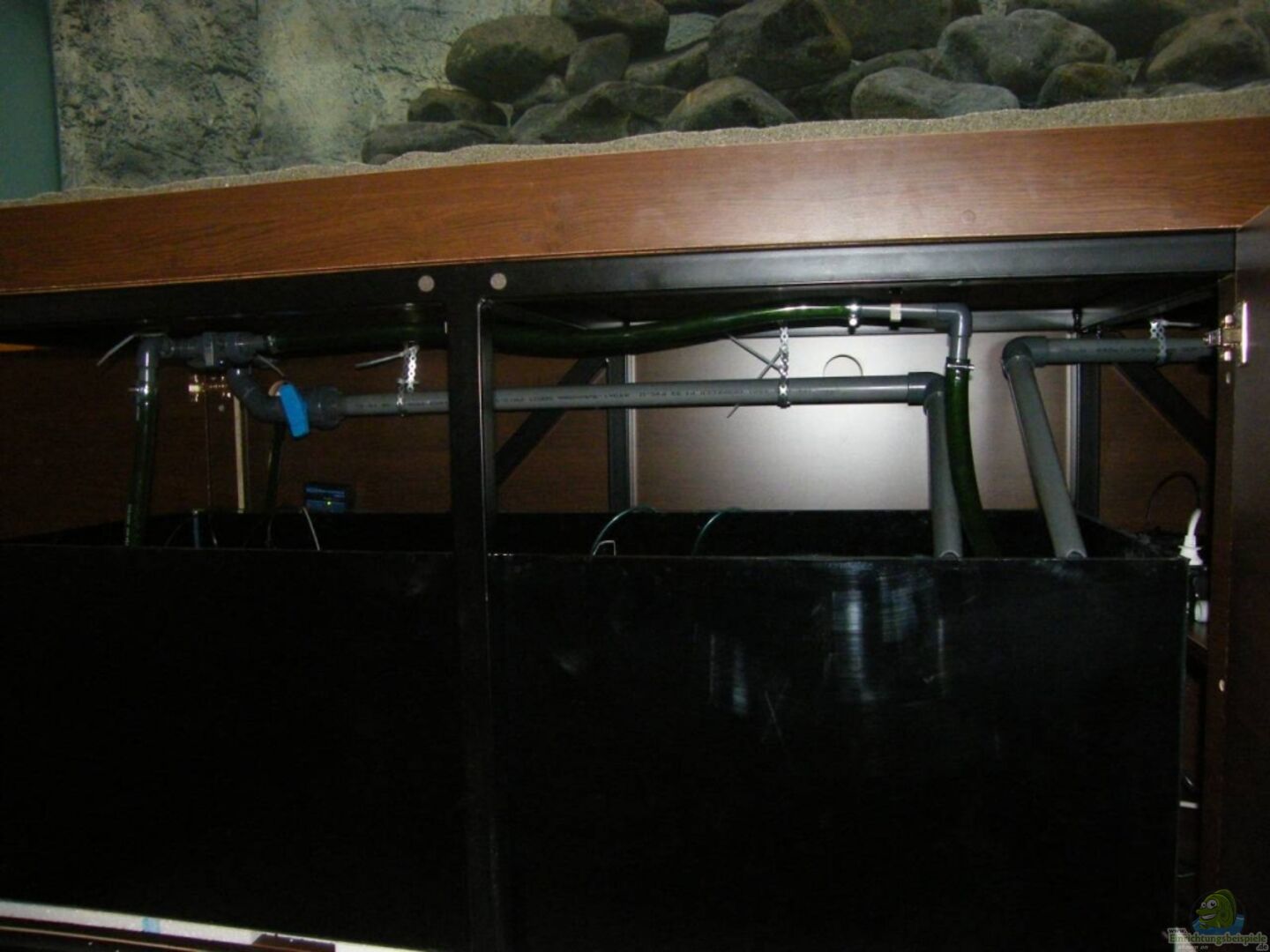 Ein externes Filtebecken ist in jedem Fall ein Hit. Allerdings ist der Sinn davon ja, wie Marco treffend geschrieben hat, die biologische Filterung. Je langsamer das Wasser also an der Siedlungsfläche der Nitrifikationsbakterien vorbei fliesst, desto effizienter können diese ihre Arbeit verrichten. Eine 5`000 Liter-Pumpe ist da eher schon ziemlich zu schnell. Wenn Du nun also die Flterpumpe runter drosselst, wird es Dir leider an Strömung mangeln, da die 13`000 Liter-Strömungspumpe leider nicht jede Ecke des Beckenserreichen kann (bedingt durch die Positionierungsmöglichkeiten und die Ausrichtung der Pumpe). Schau Dir sonst doch mal an, wie ich in meinem 2-Meter-Tank die beiden Strömungspumpen platziert habe, um optimale Oberflächenbewegung zu erreichen :-)