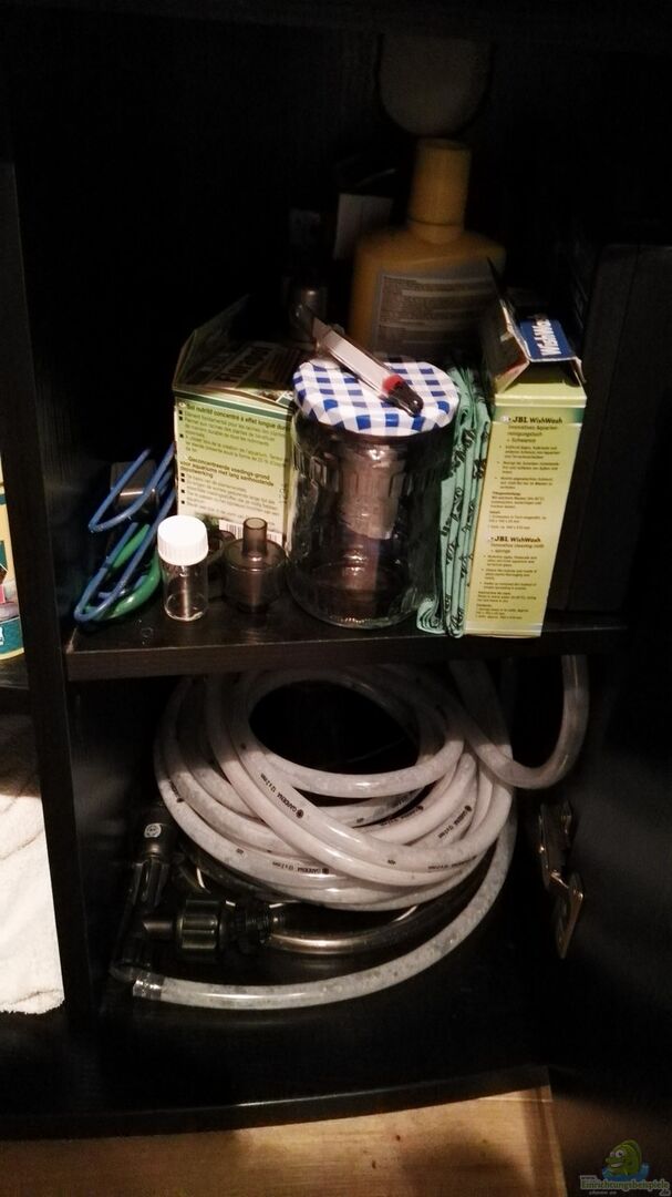 Die Filterung erfolgt über einen Eck-HMF mit einer Schenkellänge von 20cm. Der HMF wird mit einem Aquael Circulator 1000 betrieben.