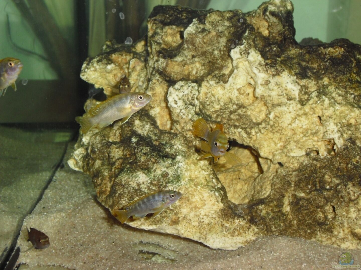 Nachdem ich meinen kompletten Nachwuchs aus dem Becken gefischt habe (und ich deshalb das ganze Becken ausräumen musste) hab ich ´umstrukturiert´. Den Fischen gefällt die neue Anordnung der Steine gut. Ein ´Neon Spot´ Weibchen hat sich direkt in einer Höhle im Stein verschanzt und brütet dort eifrig neuen Nachwuchs aus.