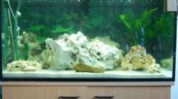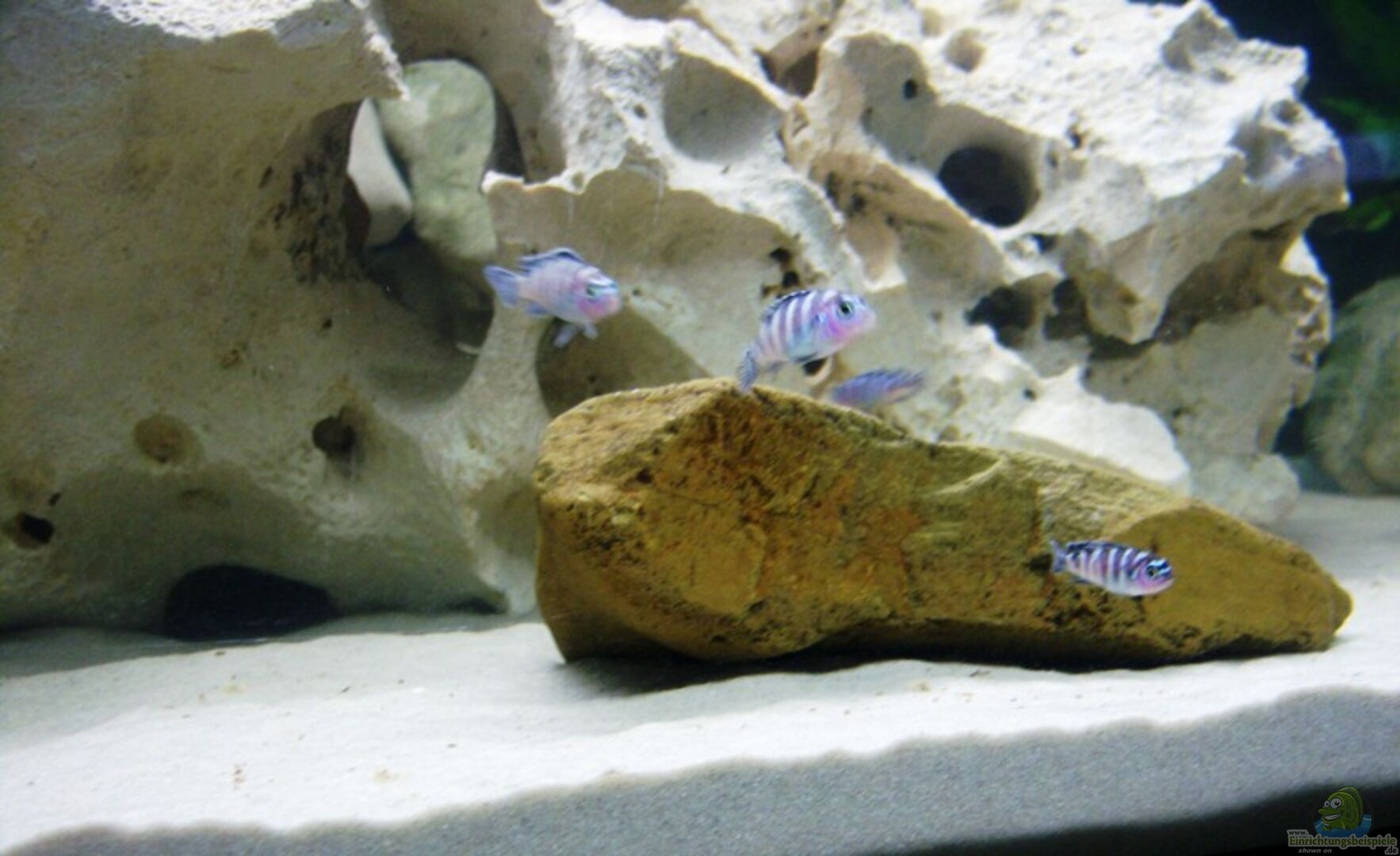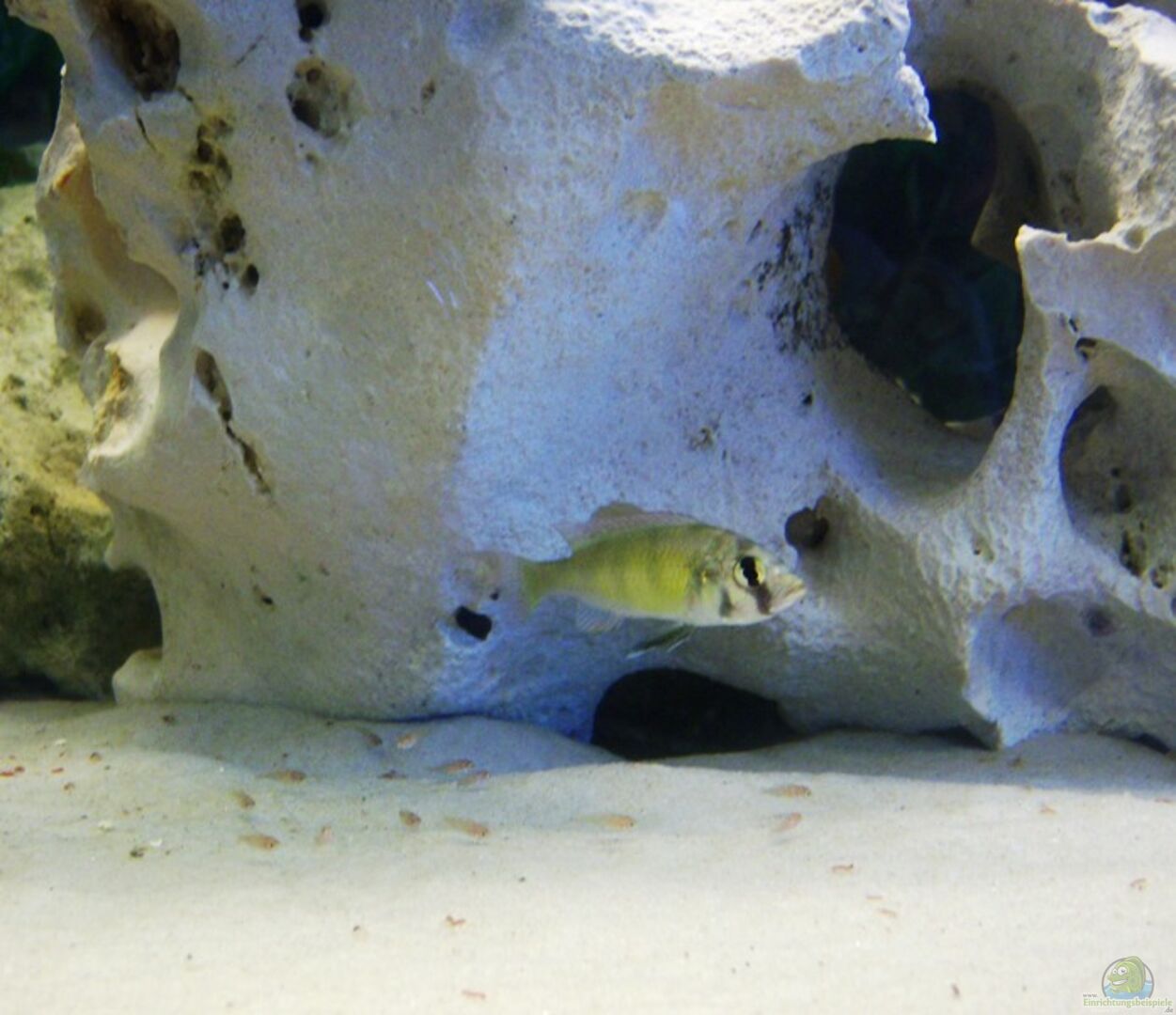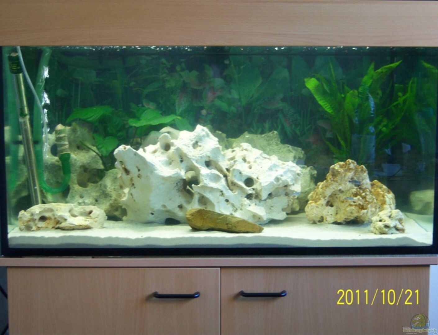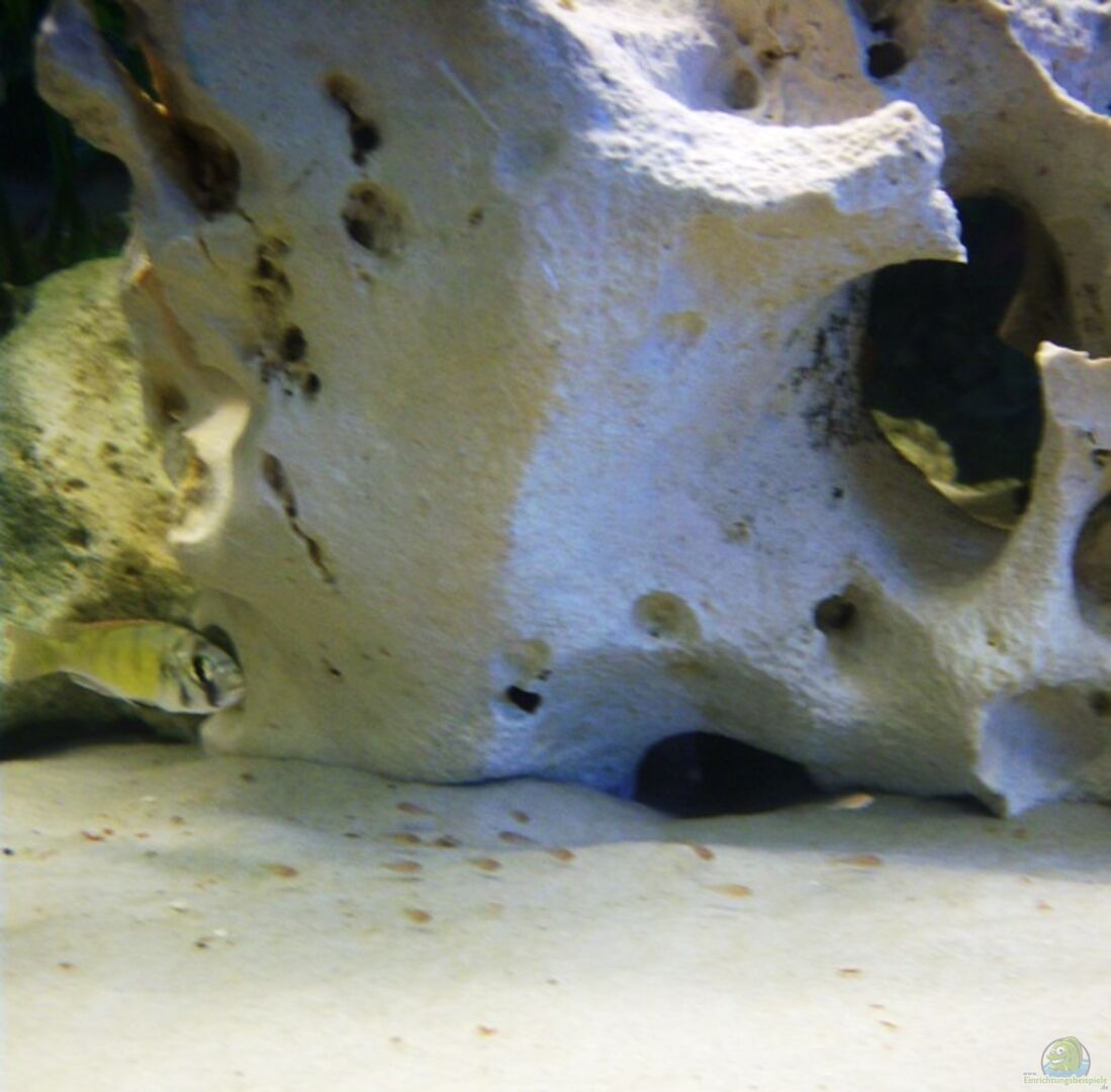 Ich habe mich auch hier für Steinaufbauten entschieden , bemerkenswert ist der grosse Stein in der Mitte des Beckens . In meinen Augen ein wunderschöner weisser Kalkstein(Lochgestein) mit sehr vielen Löchern und ideal für ein Mbuna-Becken .