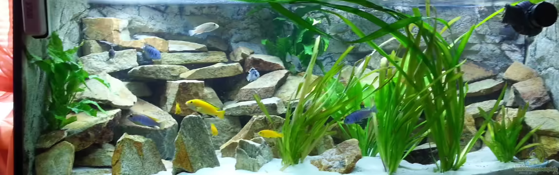Die auf den Bilder noch sehende Yellows und Pseudotroheus Saulosi sind nicht mehr im Becken, sind in ein anderes Becken umgesiedelt.