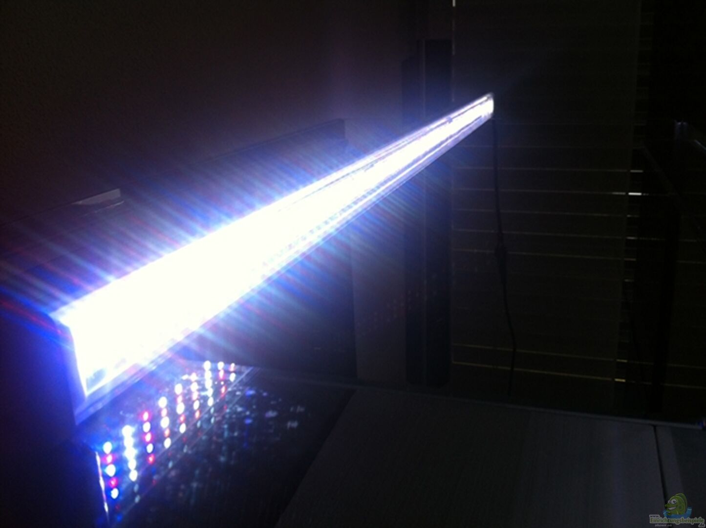 Hinter dem Becken sind 4x30cm LED-Strips verbaut für die indirekte Rückbeleuchtung. Die Beleuchtung dient ausschliesslich als "Blickfang". Die LED's sind dimmbar und können über einen Remote-Controller das ganze Farbspektrum abbilden.