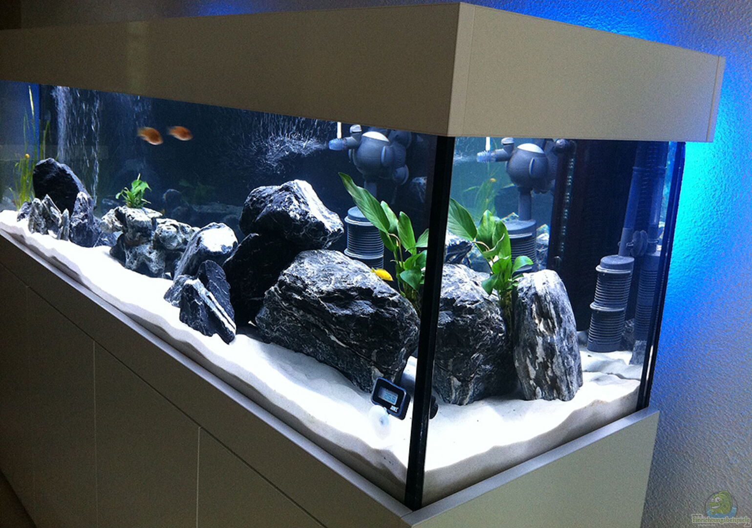 willkommen hier auf Einrichtungsbeispiele.de. Ist ein tolles Becken, das zeigt, dass man auch Malawibecken mit wenig wuchtigen Steinaufbauten einrichten kann. Es muss natürlich der Besatz entsprechend passen. Was planst du da noch?