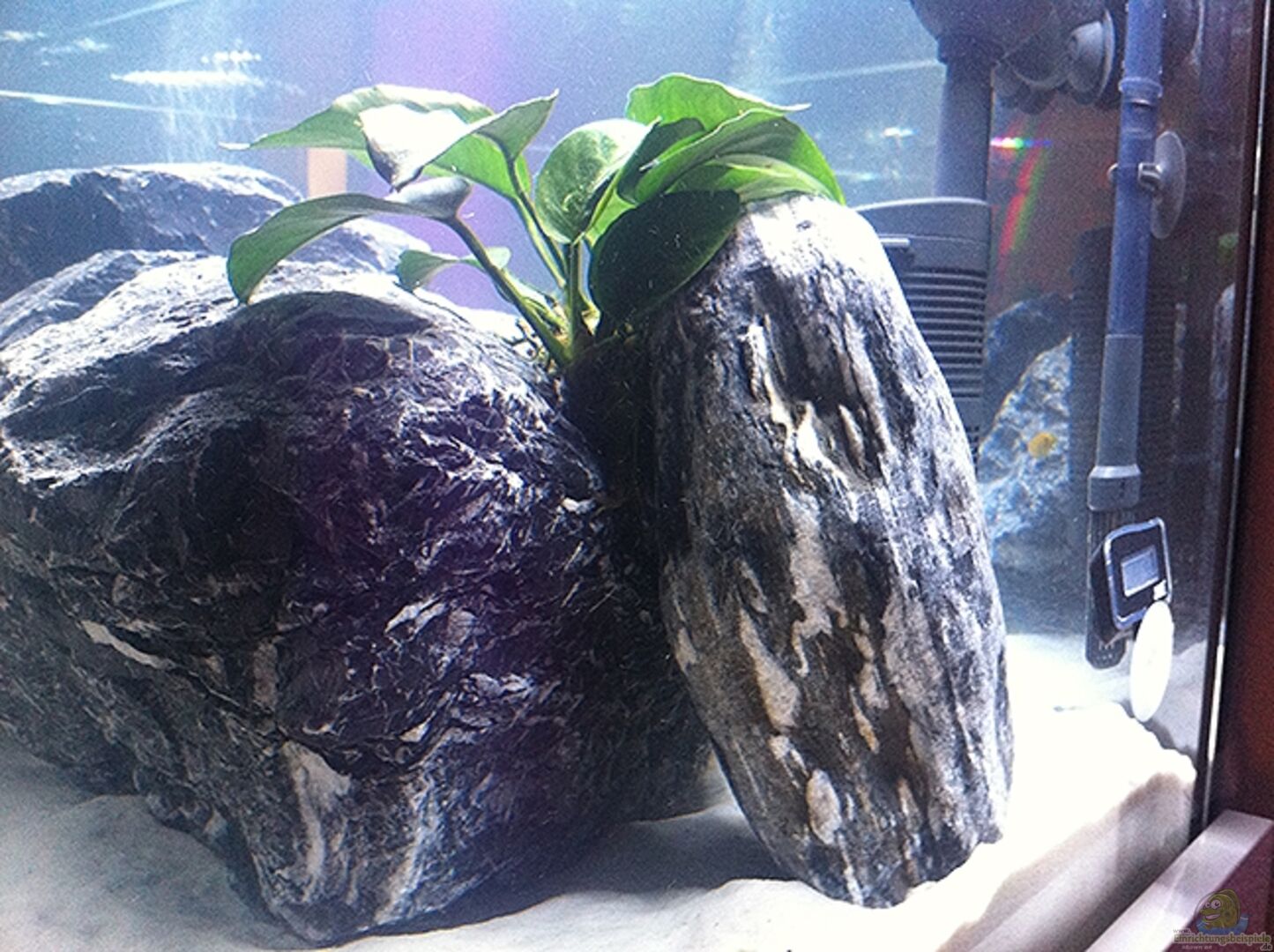 - dunkler Lochstein, passend zur Einrichtung & Farbe (Rückzugsmöglichkeit für Welse)