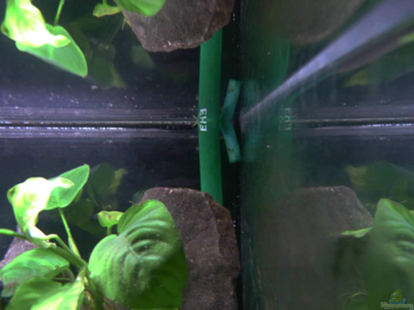 Ich fand das Becken zu hell, deswegen ist nur eine Röhre in Betreib ( die hintere ).Das sorgt für eine dunklere Atmosphäre, was schöner aussieht und den Tieren auch ganz recht ist.