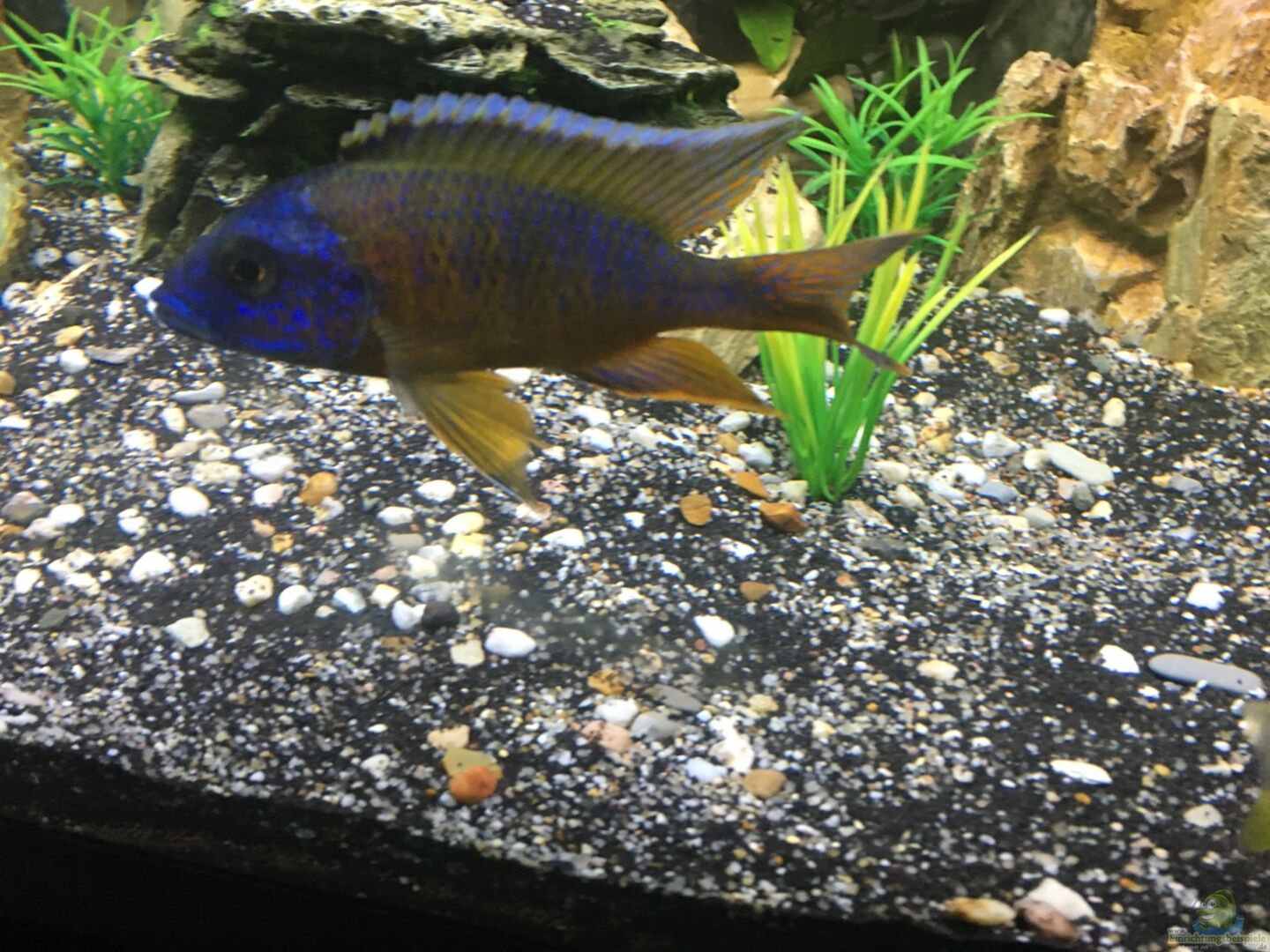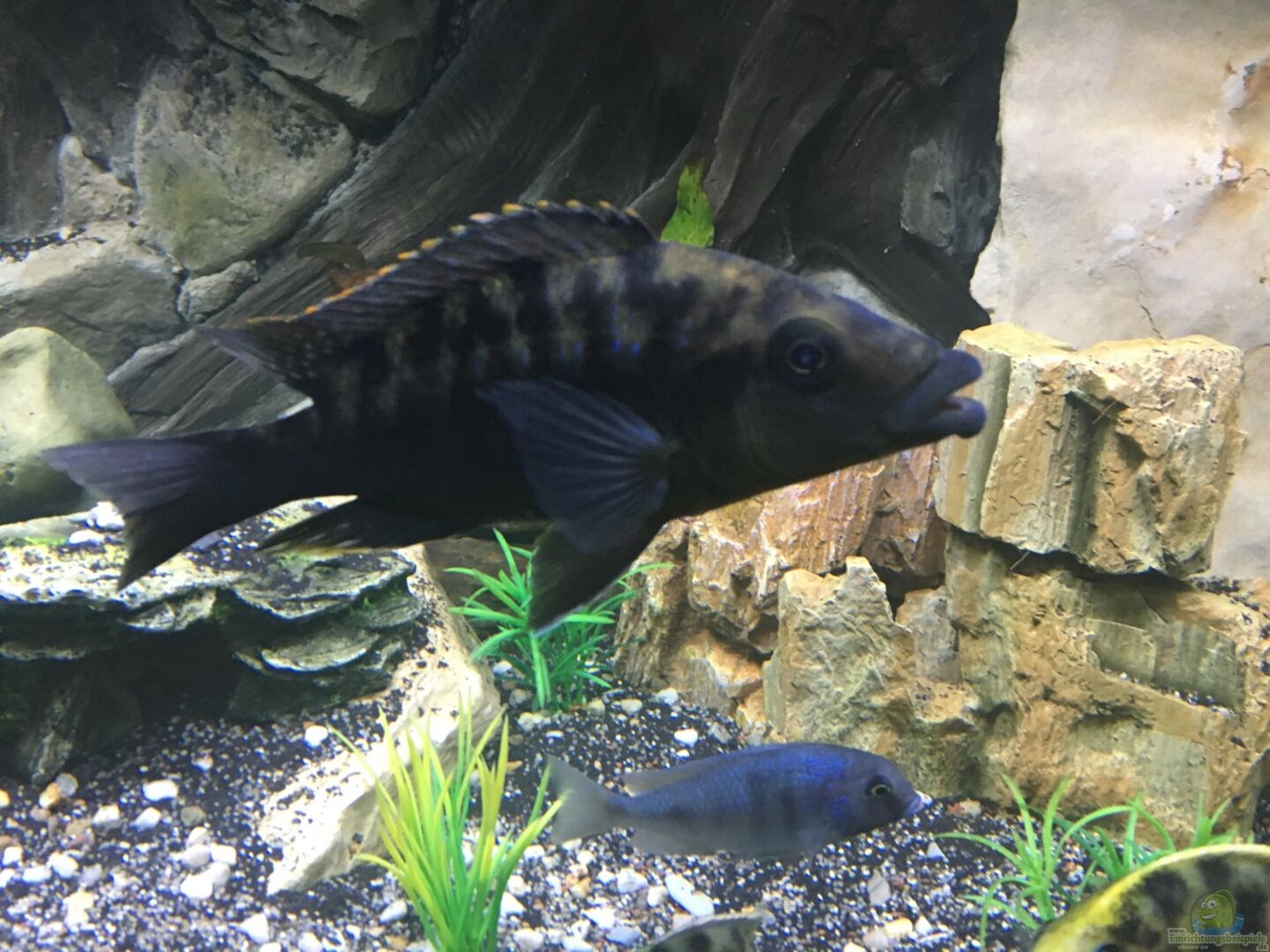 Optisch finde ich es immer etwas schwierig, Amazonas-Pflanzen und die Rückwand mit den Malawis zu kombinieren. Das ist aber eine reine Geschmacksache und macht für die Fische keinen Unterschied.