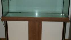 Aquarium Schrank< der Schrank ist Eigenbau aus 22mm starken Platten, er wurde mit Trapezen verbunden so das man ihn wieder komplett zerlegen könnte. Die Deckplatte besteht aus 2x 22mm starken Platten. Also alles in allem sehr stabil.