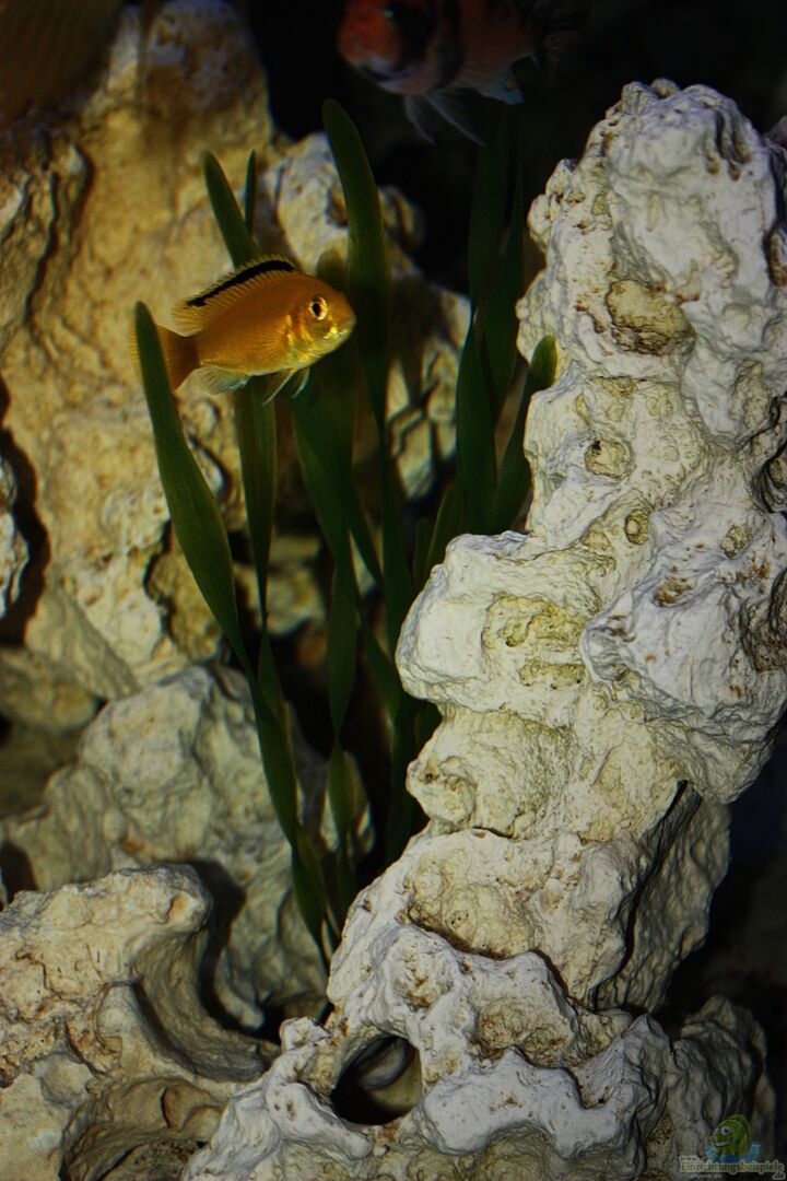 Aufbauten aus hellem Lochgestein ( teilweise echte Steine, teilweise Künstliche), bieten viele Versteckmöglichkeiten.