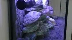 Nach einbringen der Steine und Bodengrund fasst das Aquarium noch 150 Liter Wasser.