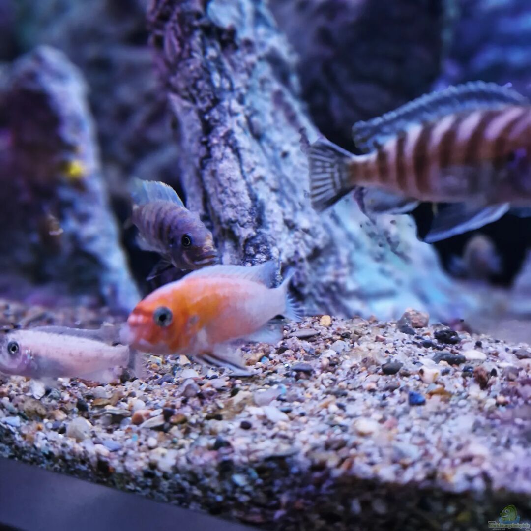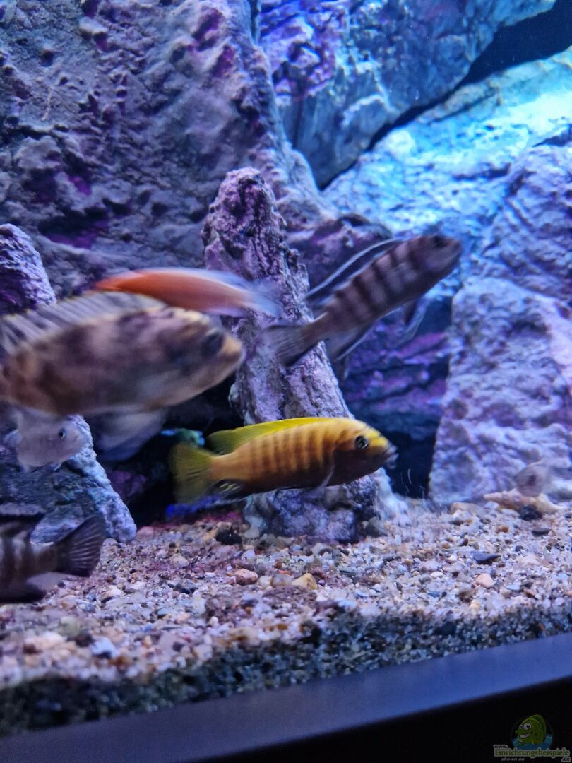 Der Besatz des Beckens hat sich hervorragen eingelebt ind besteht aus 34 Tieren, von 5 verschieden Arten. Die Fische wurden bei African Colours erworben.Die Tiere zeigen jetzt schon sehr schöne Farben obwohl es noch Jungtiere sind.