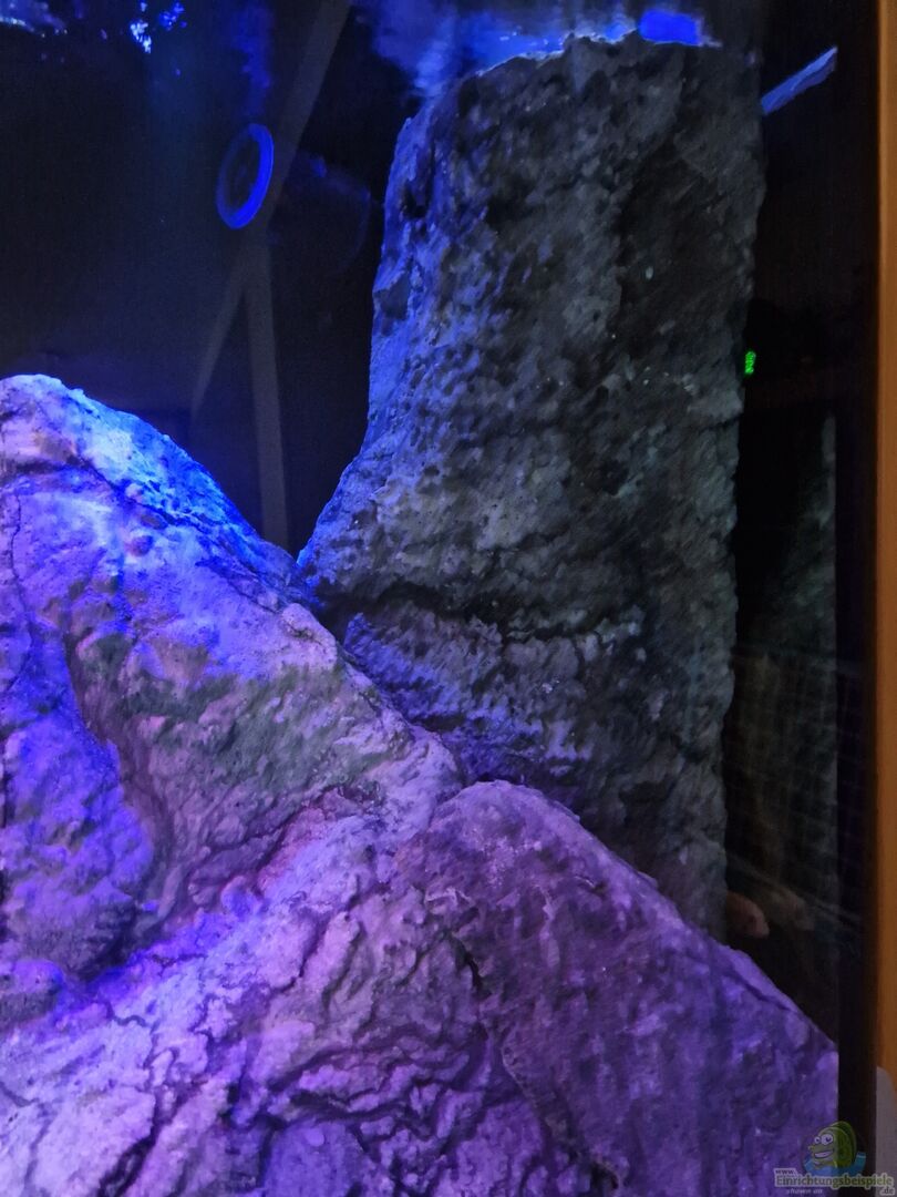 Die Steinmodule sind aus Italien und sind sehr leicht in der Bauweise. Sie wurden nicht verklebt sondern nur Locker auf die Plastegitter aufgesetzt. Der Filterstein ist 55cm hoch und im Innendurchmesser ca 25cm. Darin habe ich verschiede Filtermaterialien eingebracht und eine Teichpumpe mit 600l/min intigriert.Sie saugt das Wasser vom Boden des Aquariums an und fungiert gleichzeitig als Strömungspumpe.