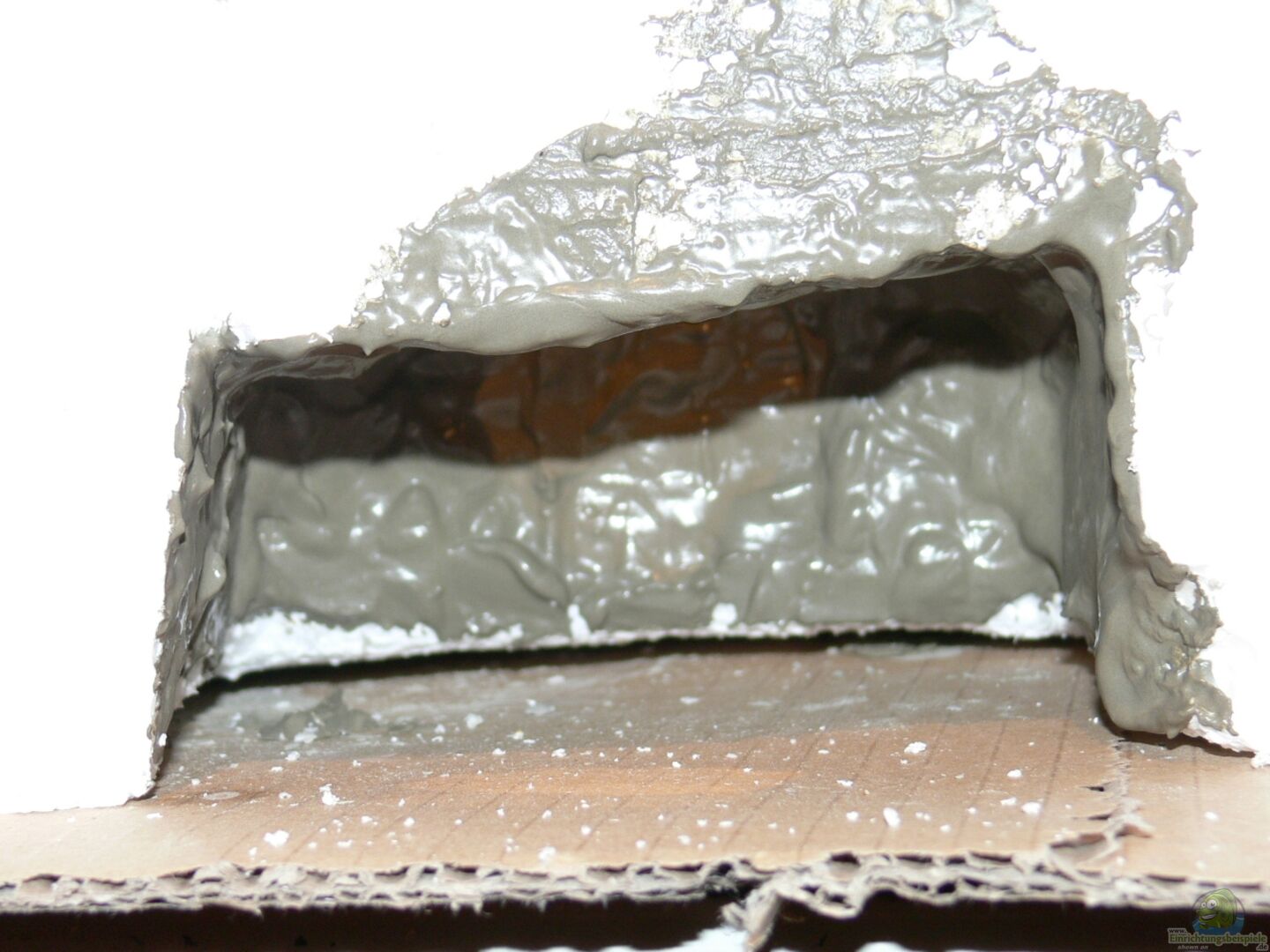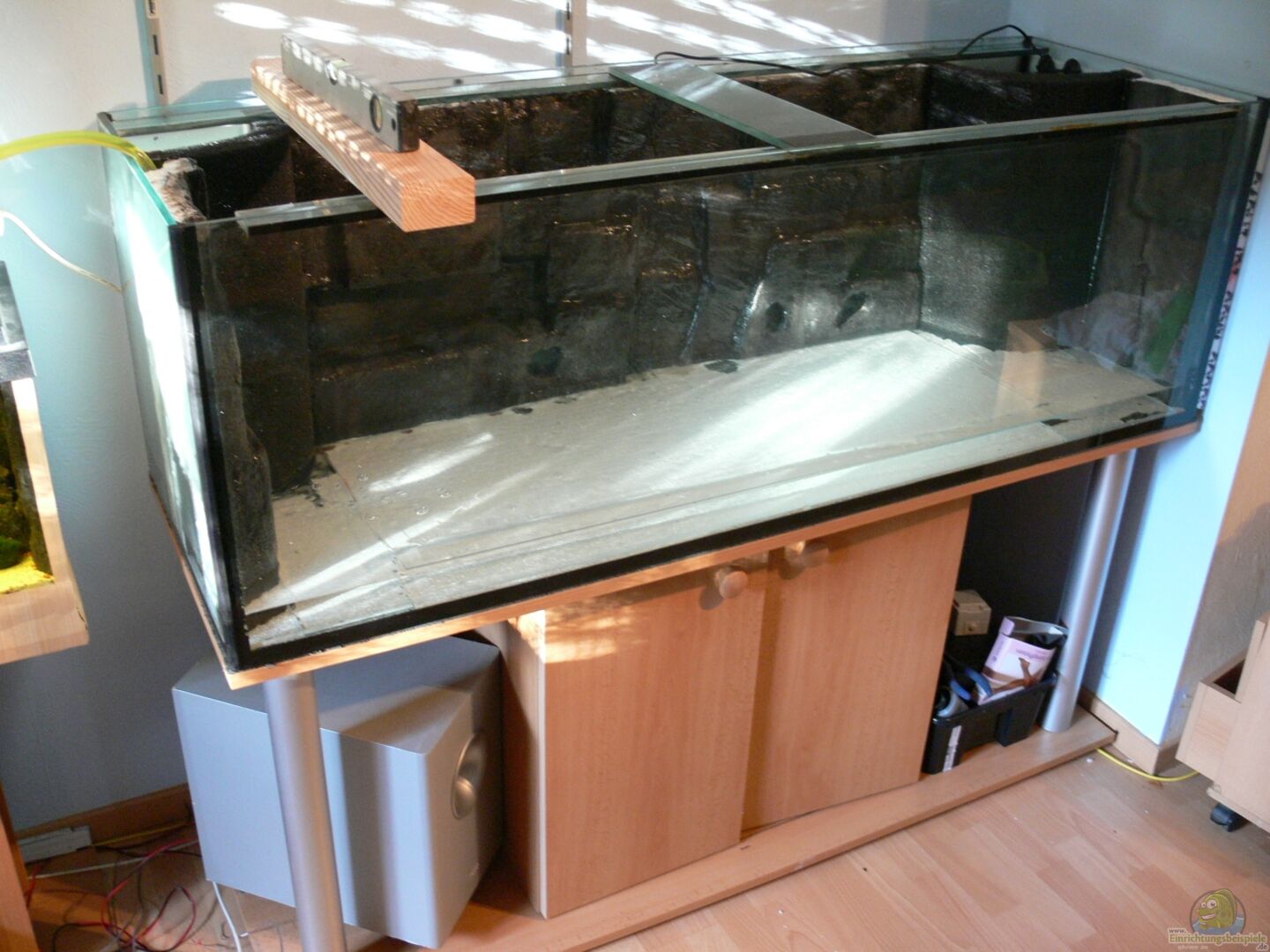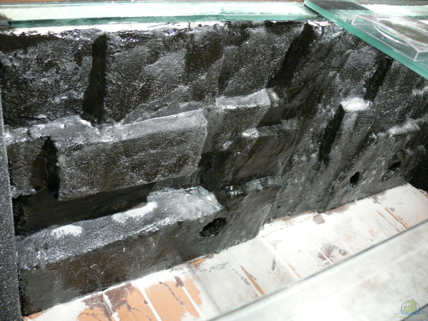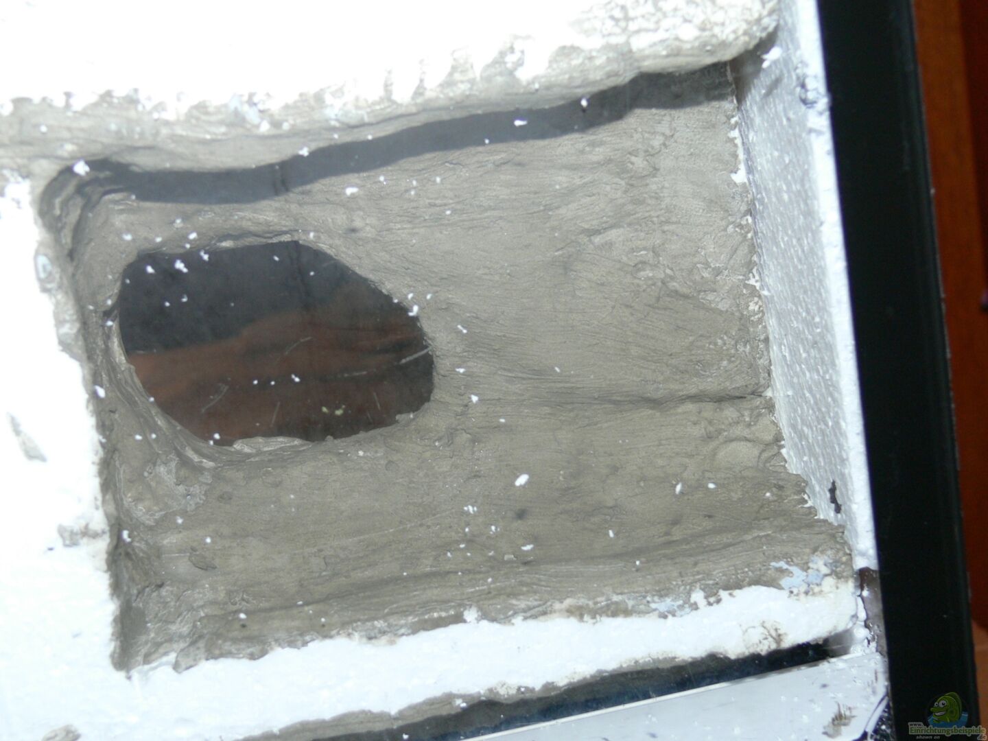 Rückwand: aus 10 cm Styropor in zwei Teilen geschnitte, ausgearbeitet und Geföhnt. Nächste Woche wird mit Portlandzement (gute anfangstrocknung) ausgearbeitet. Ich wei?? noch nicht, ob im Aquarium oder auf den Tisch mit den Zement Arbeiten soll. Ich hoffe das bald auch Epoxidharz Aquarium E45TM zum versiegeln bald kommt.
