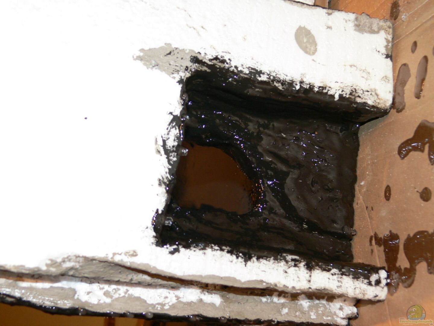 Zum schutz eine 0, 5 cm styropor auf der Bodenscheibe geklebt. Auf den Styropor eine angepasste 4mm Plexiglasplatte (Polystyrol Glat). Sie soll das Gewicht der Basaltbruchs gleichmässig verteilen.