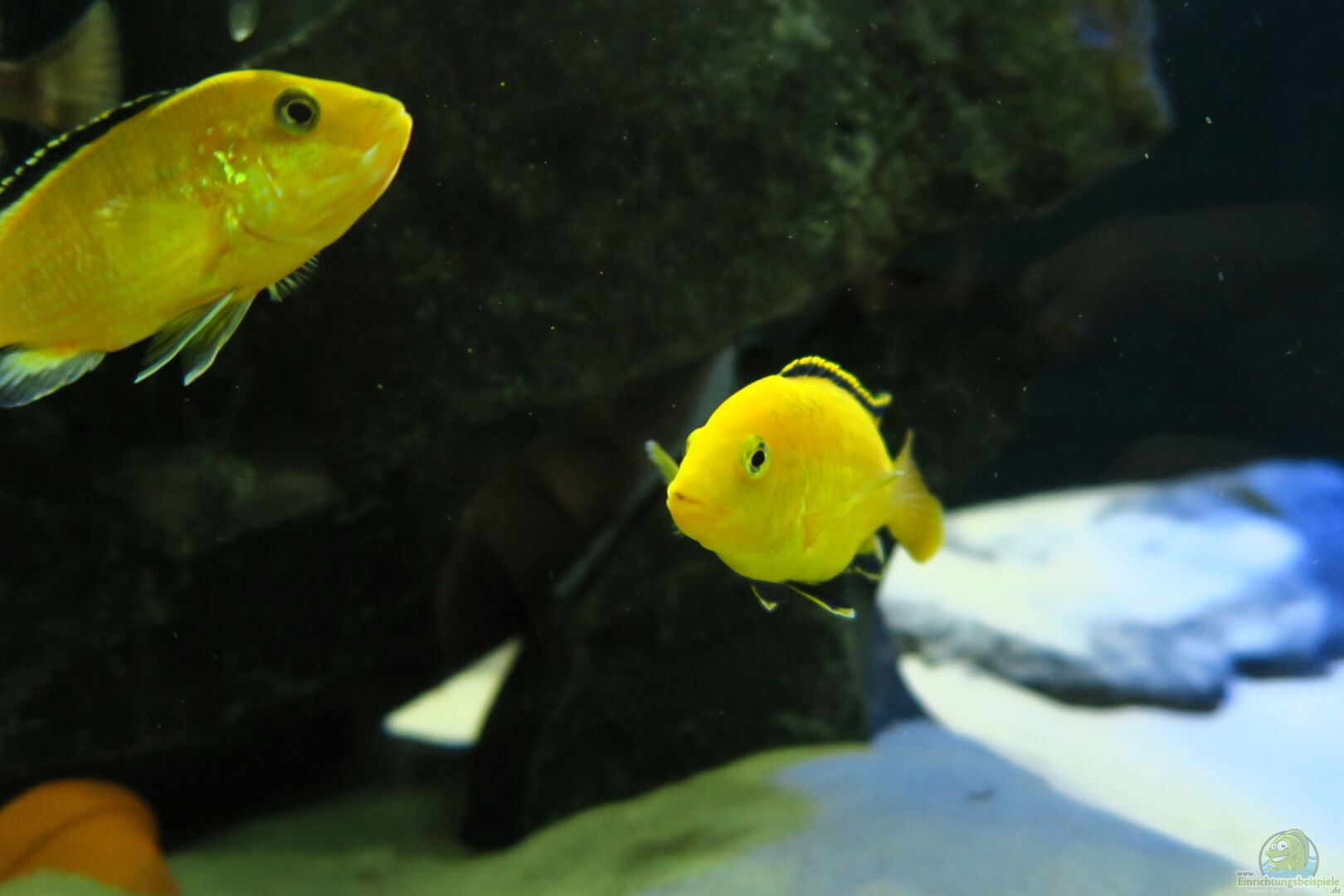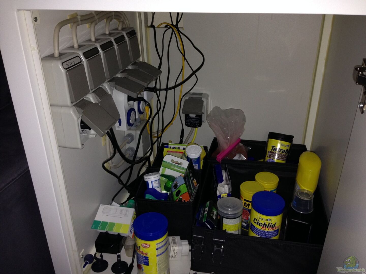 Der Rechte ist aber der einzige der in betrieb ist. Der Linke ist nicht in Betrieb weil ich dort 4 Nachzuchten meines Aulonocara schwimmen habe. Aber dort ist eine Luftpumpe drin die ich übrig hatte.