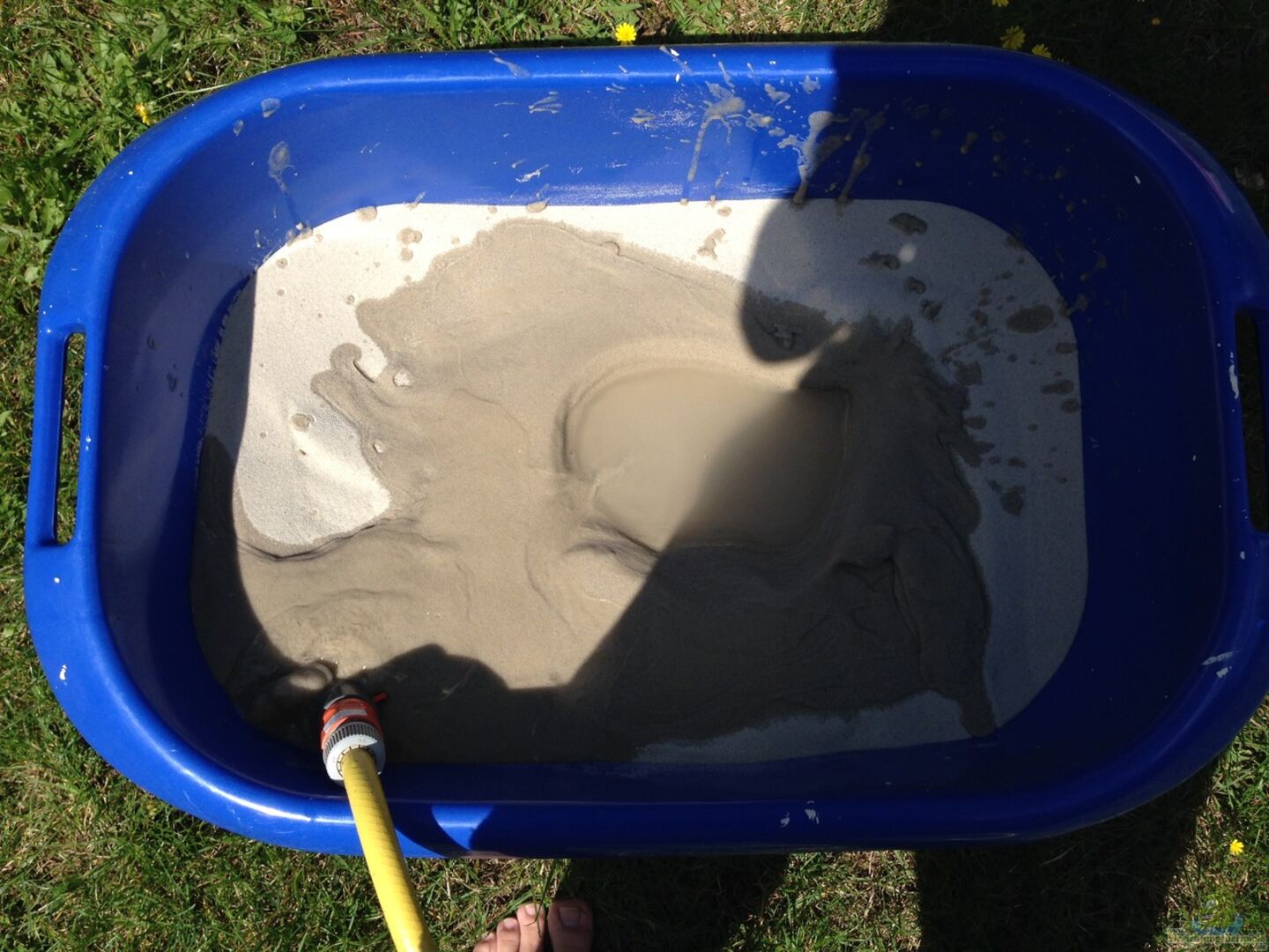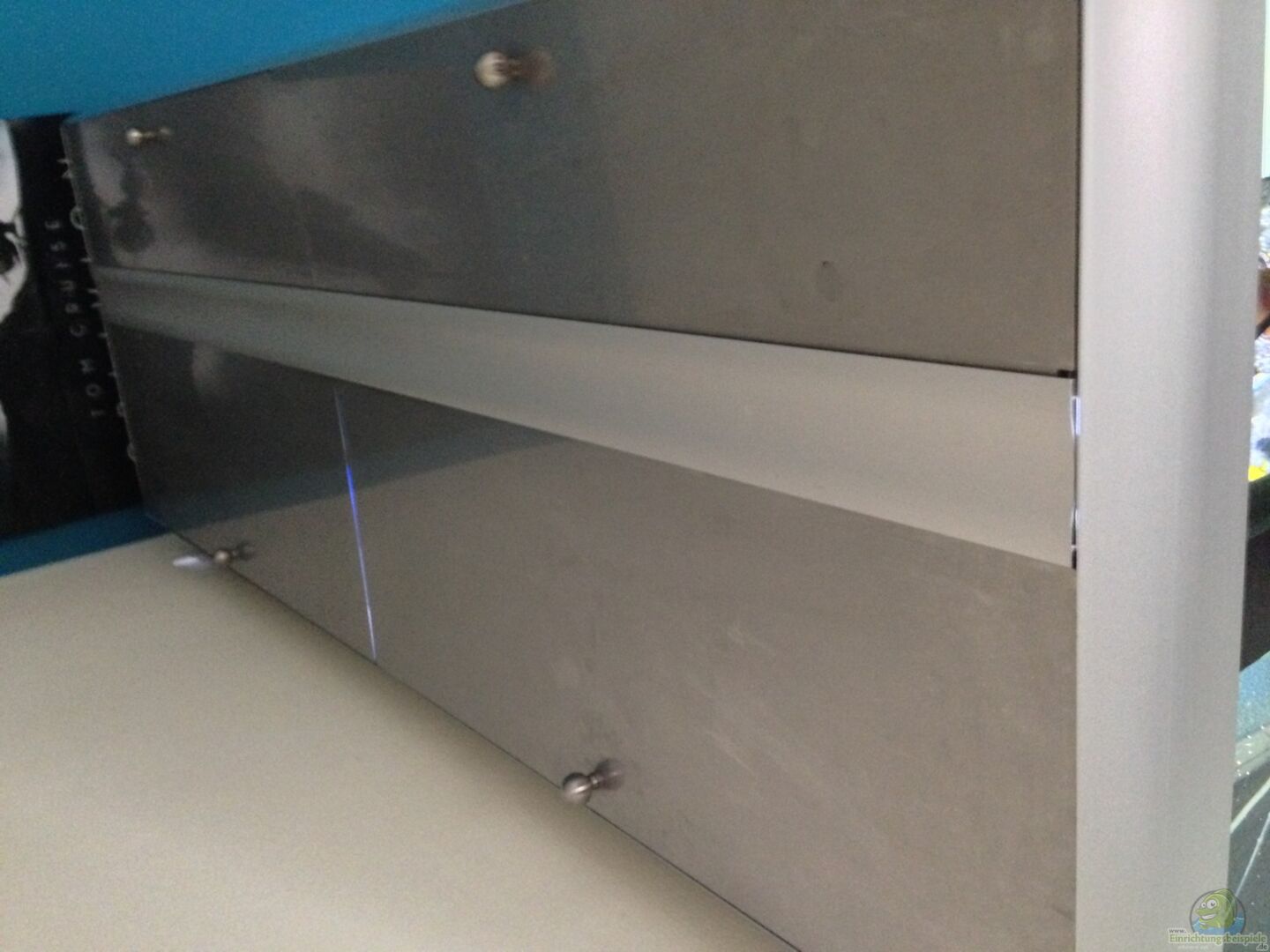 Im Becken selbst also unter dem Sand ist eine Hartschaumplatte damit die steine nicht auf dem Glas aufliegen. Zwischen dem Schrank und dem Aquarium ist eine Arbeitsplatte und eine Styroporplatte und weil in meinem Zimmer Laminat ist