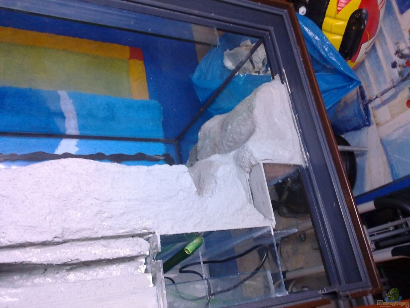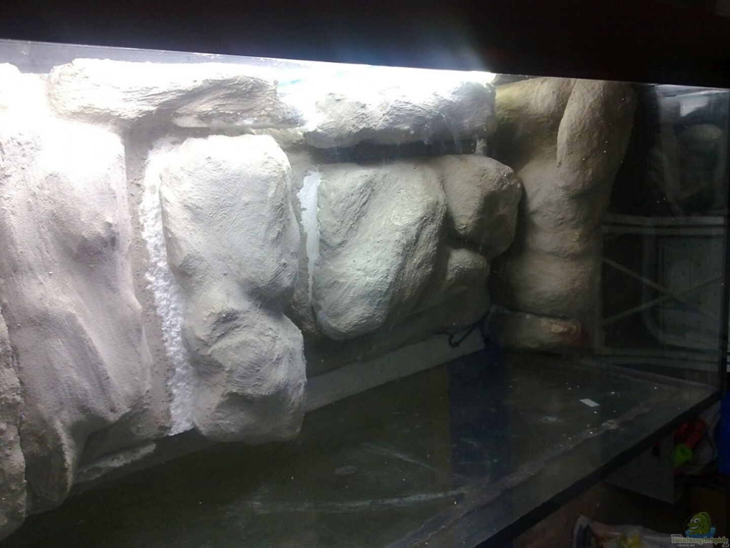 Es ist vollbracht. Rückwand ist fertig. Jetzt mu?? das Becken wieder an seinem angestammten Platz und kann gewässert werden. Die Bilder sind zwar nicht so perfeckt aber das wird noch wenn es später voll eingerichtet ist.
