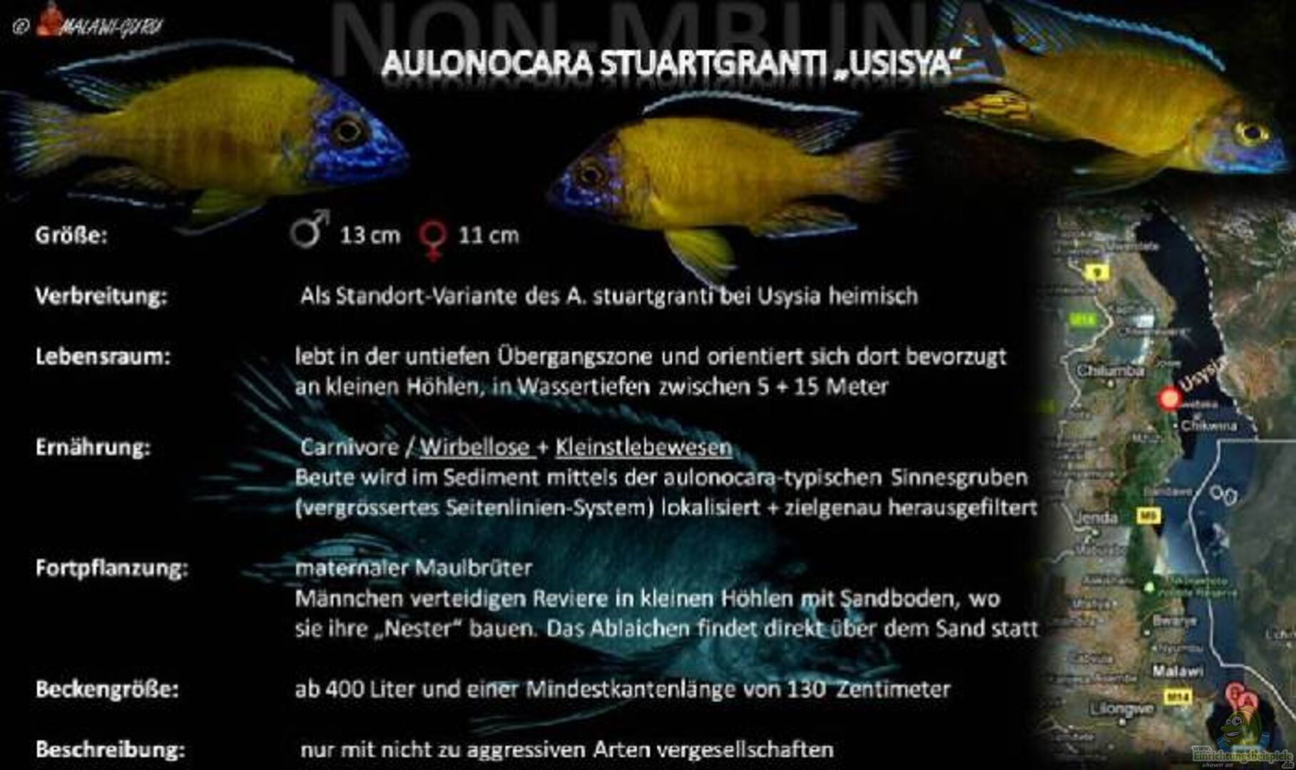 A. stuartgranti ???usysia??? gehört in die Stuartgranti-Gruppe und zählt zu denjenigen Fels-Aulonocaras, welche meist unter dem Handelsnamen ???Usysia Aulonocara??? exportiert und angeboten werden.
