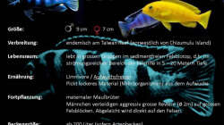 Trotzdem benötigt auch dieser Mbuna etwas ballaststoffreiche und carotinhaltige Nahrung (z.Bsp. Spirulina), weshalb sich der Caeruleus auch gerne mal über den Aufwuchs hermacht.