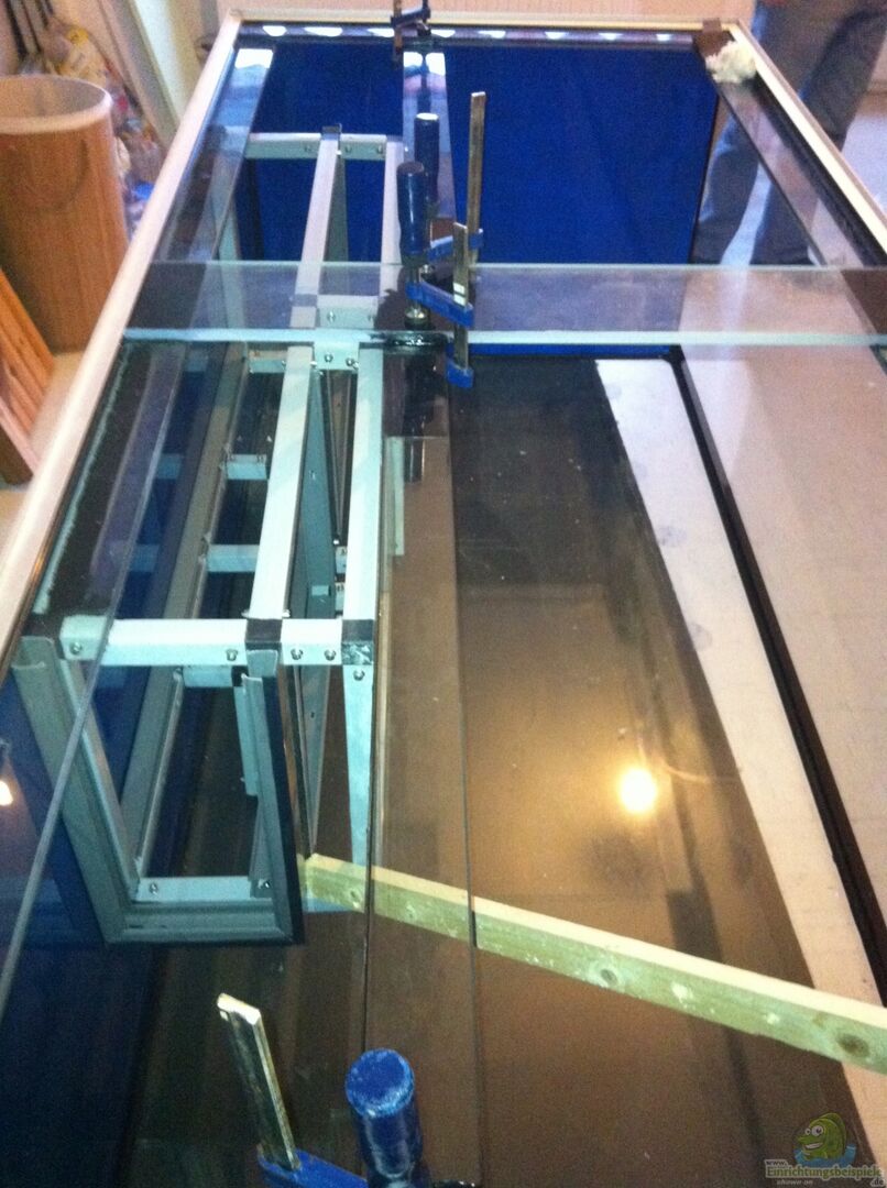 - Material: Doppelstegplatten, Alu-U-Profile, Alu-T-Profile, Tesa Powerbond, Kunstoff-L-Profile, Aquariumsilikon, Möbelfolie usw.