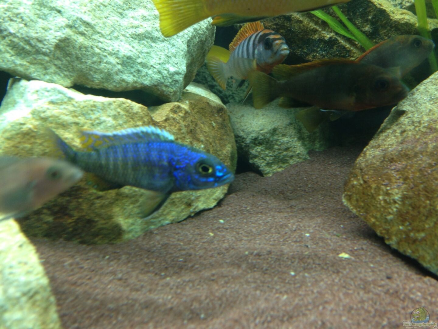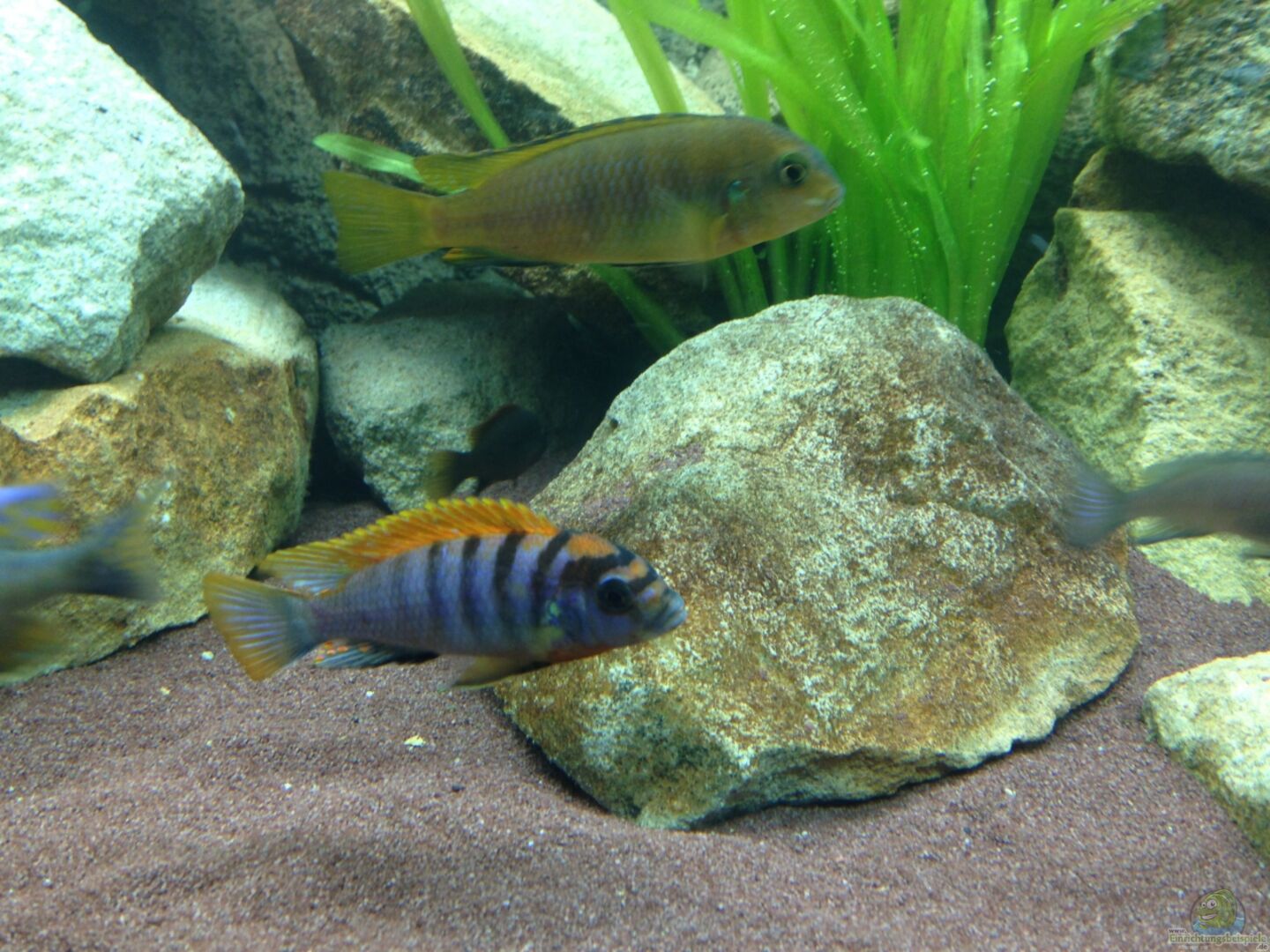 Ursprünlich wollte ich ein reines Mbuna Becken Pflegen doch da ich nicht mit so viel Nachwuchs gerechnet hatte musste ich noch einen Jäger einsetzen. Der Sciaenochromis Fryeri ist gerade zu prädestiniert für ein Mbuna Becken da er im Natürlichen Lebensraum genau auf diese Jagt macht.