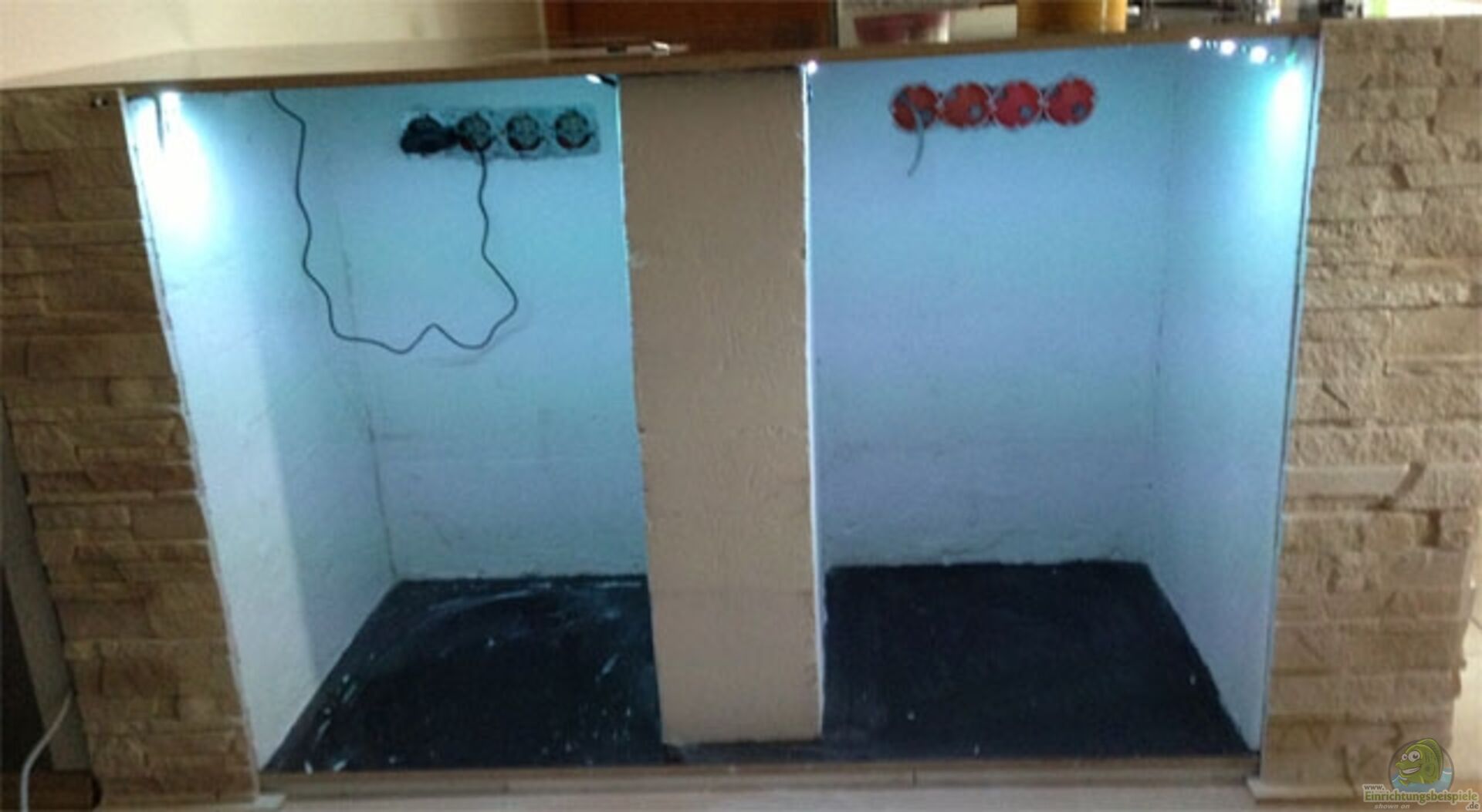 Die Rückwand wurde oben etwas nach vorne geneigt um die Pumpe anbringen zu können und um platz zu schaffen für eine Problemlose Mattenreinigung. Dies fällt aber nicht weiter auf.