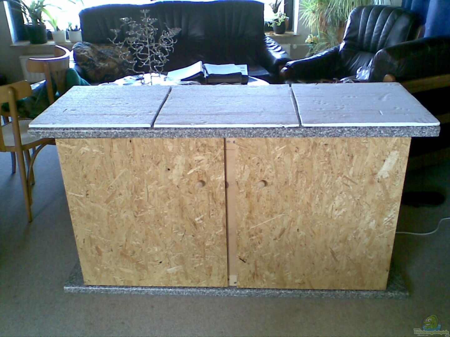 Das Becken wurde gebraucht gekauft, und wurde von mir etwas "umgebaut" Rahmen und Mittelsteg wurden mit Marmorfolie beklebt. Der Unterschrank wurde von mir selbst gebaut aus osb-Platten und Arbeitsplatten...