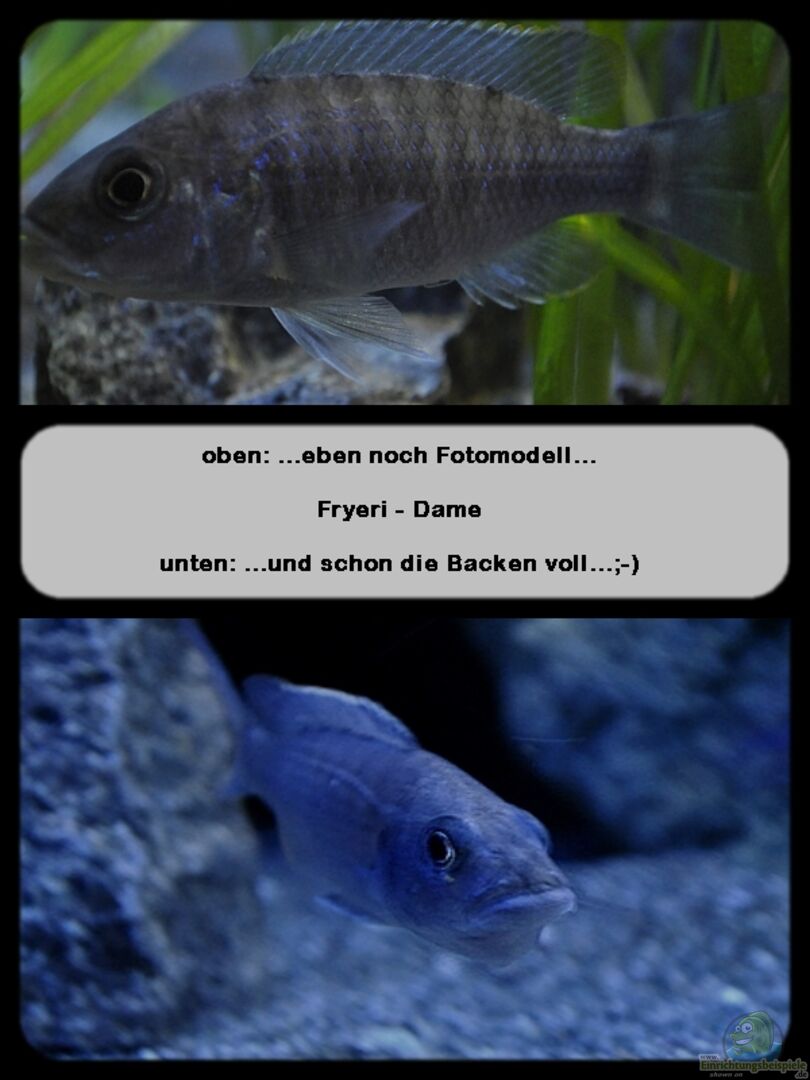 --> flankiert von einem Harem aus Sciaenochromis Fryeri (1/3) und vorerst noch Copadichromis borleyi Kadango (1/3)