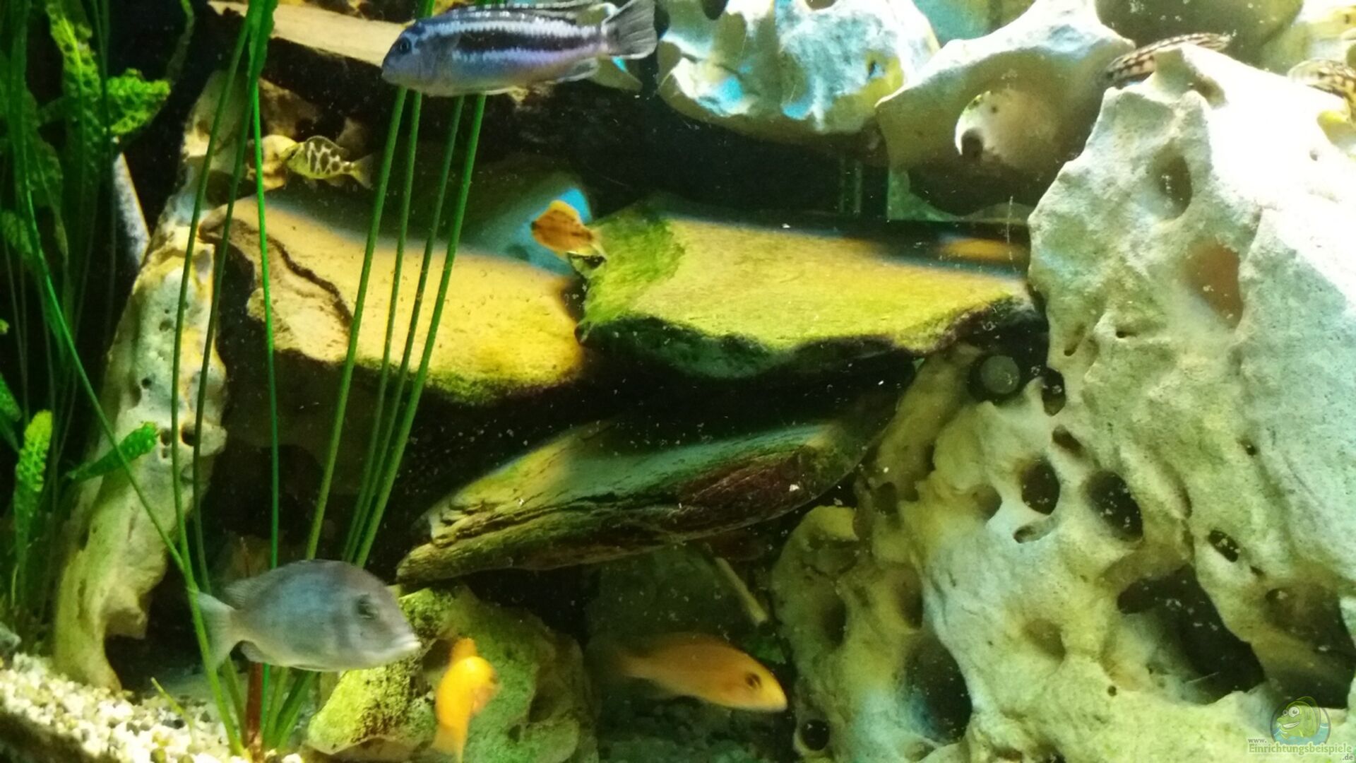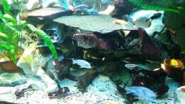 Dein Becken wirkt durch Deine verschiedenen Gesteinsarten, die sich bei Dir im Aquarium befinden, sehr unruhig. Au?erdem ist Schiefer zu scharfkantig und das Lochgestein birgt die Gefahr, das sich Deine Fische darin einklemmen können. Au?erdem ist Lochgestein nicht nur meiner Meinung nach `Old School`, man hat das heute eigentlich nicht mehr und auch Deine Beleuchtung ist meiner Meinung nach viel zu hell für ein Malawibecken.