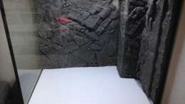 Die Rückwand, rechte Seitenwand (weil es bei mir in der Ecke steht) und der Innenfilter ist mit der Juwel Stone Granit Rückwand und Filtercover beklebt.