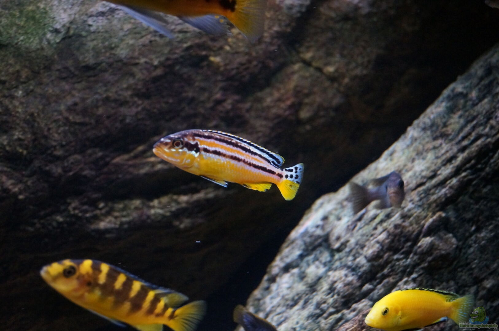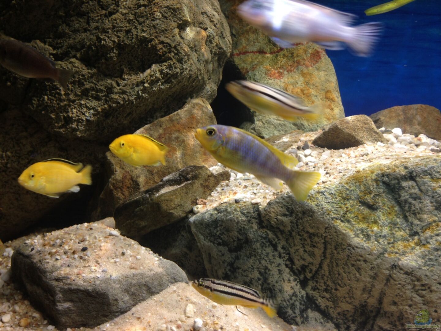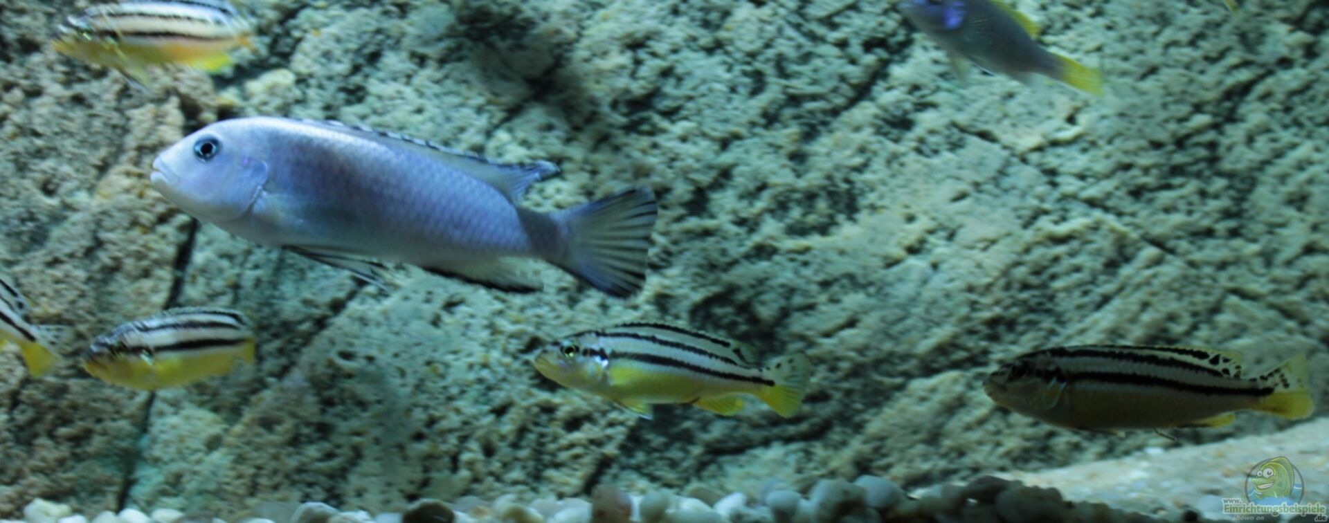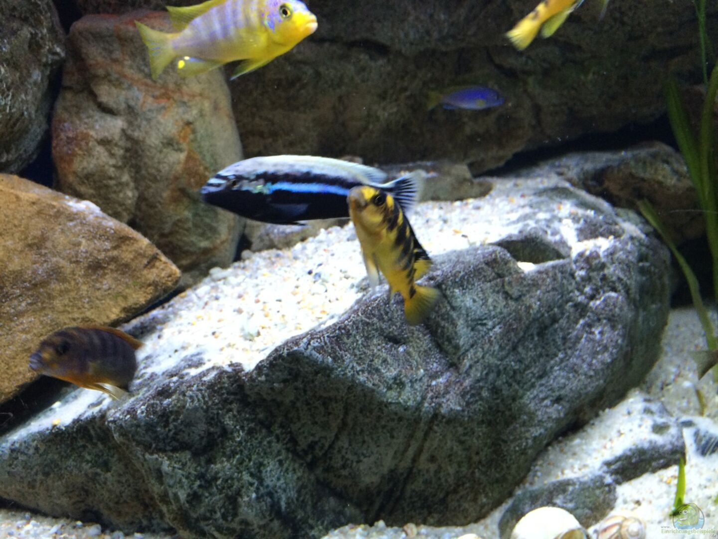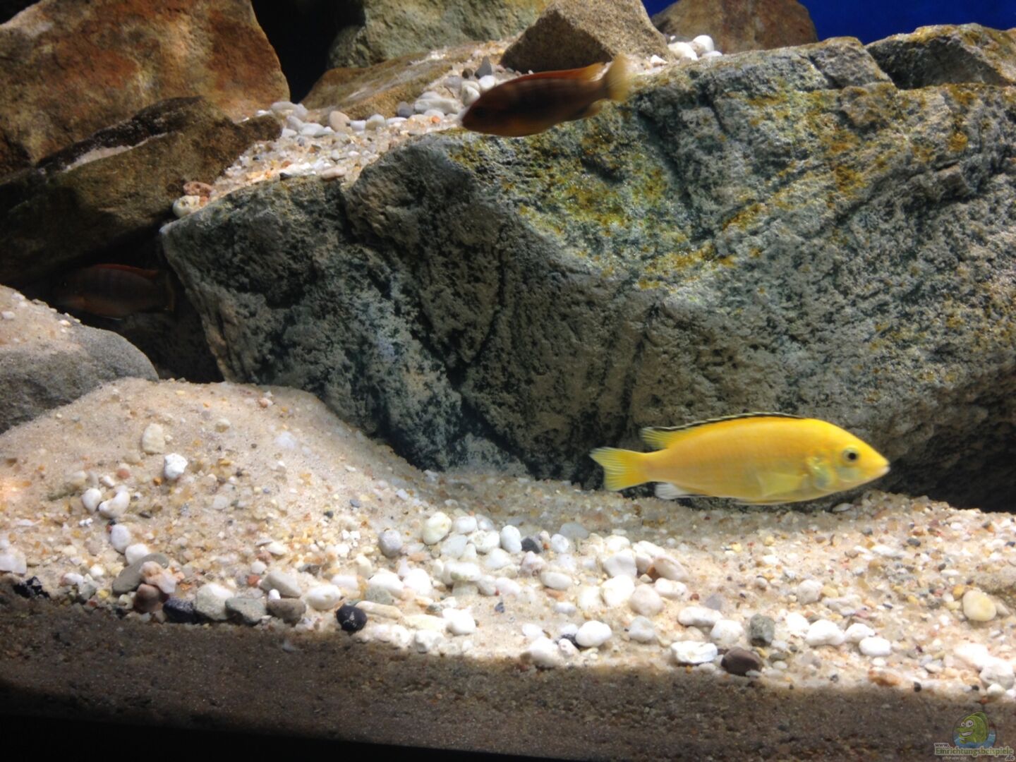 Aggressionen sind kaum vorhanden, so dass sogar der L. Mbamba Bay, der ja eher durchsetzungs-schwach ist, in voller Ausfärbung durch das Becken schwimmt und den Weibchen nachstellt. Das Becken läuft seit Dezember 2013.
