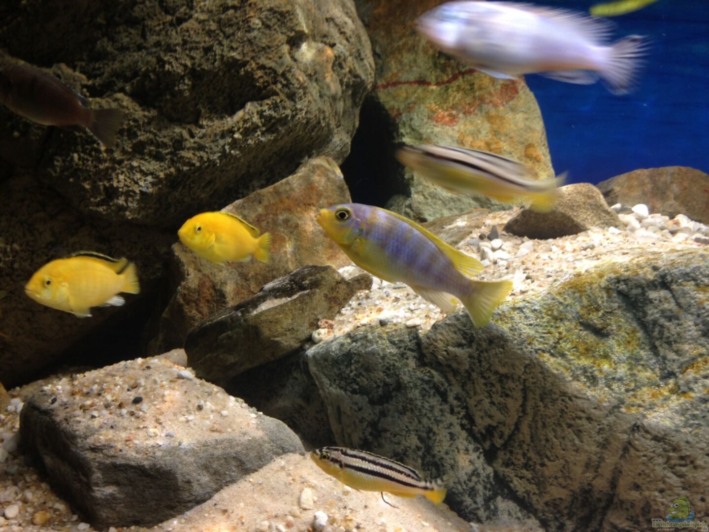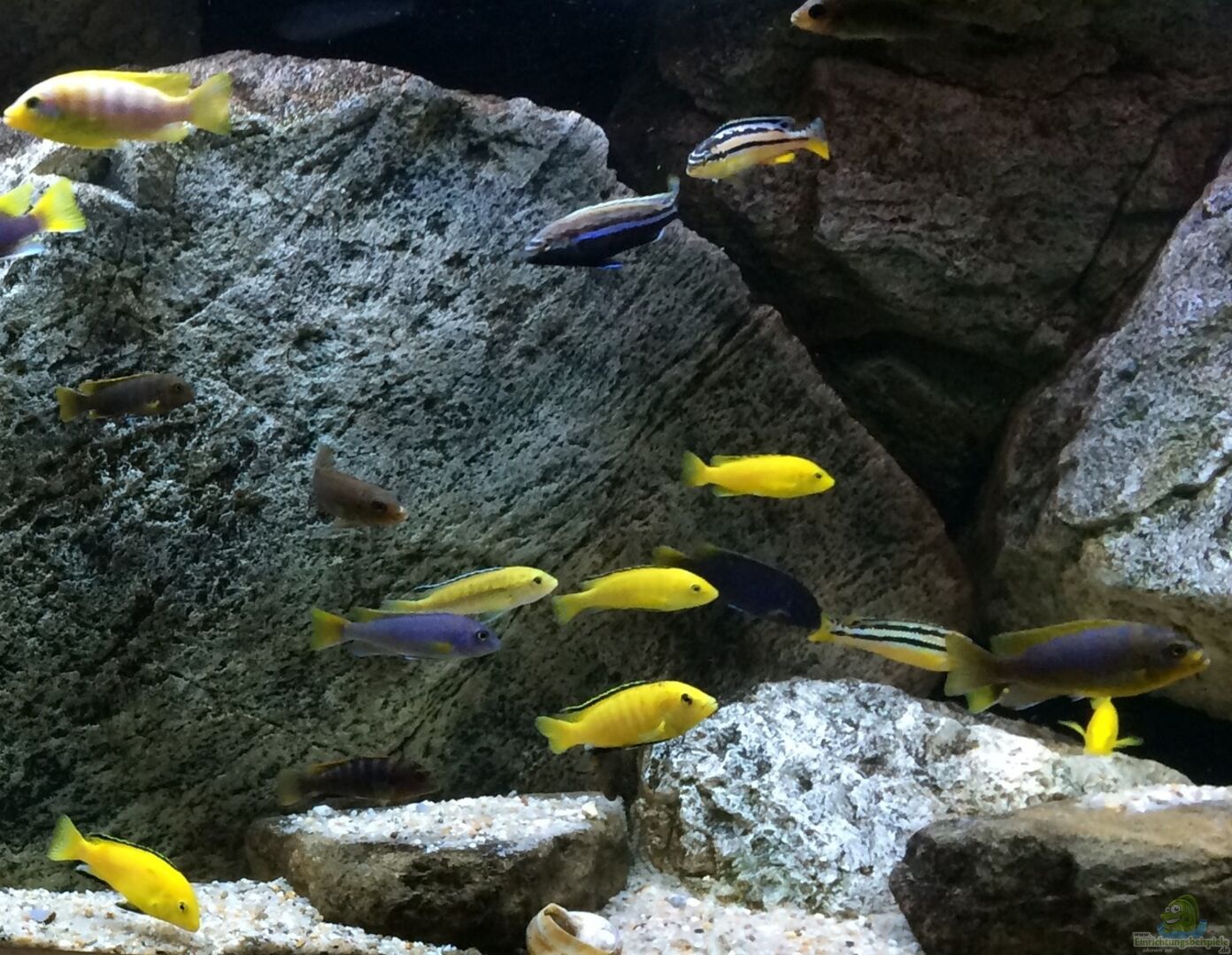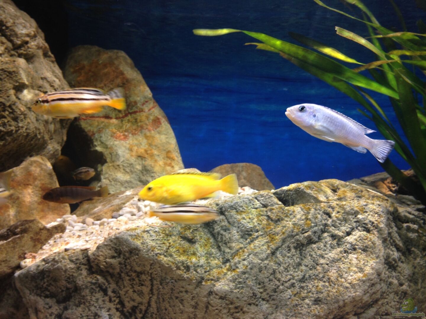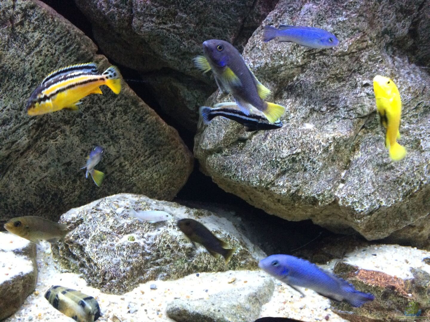Aggressionen sind kaum vorhanden, so dass sogar der L. Mbamba Bay, der ja eher durchsetzungs-schwach ist, in voller Ausfärbung durch das Becken schwimmt und den Weibchen nachstellt. Das Becken läuft seit Dezember 2013.