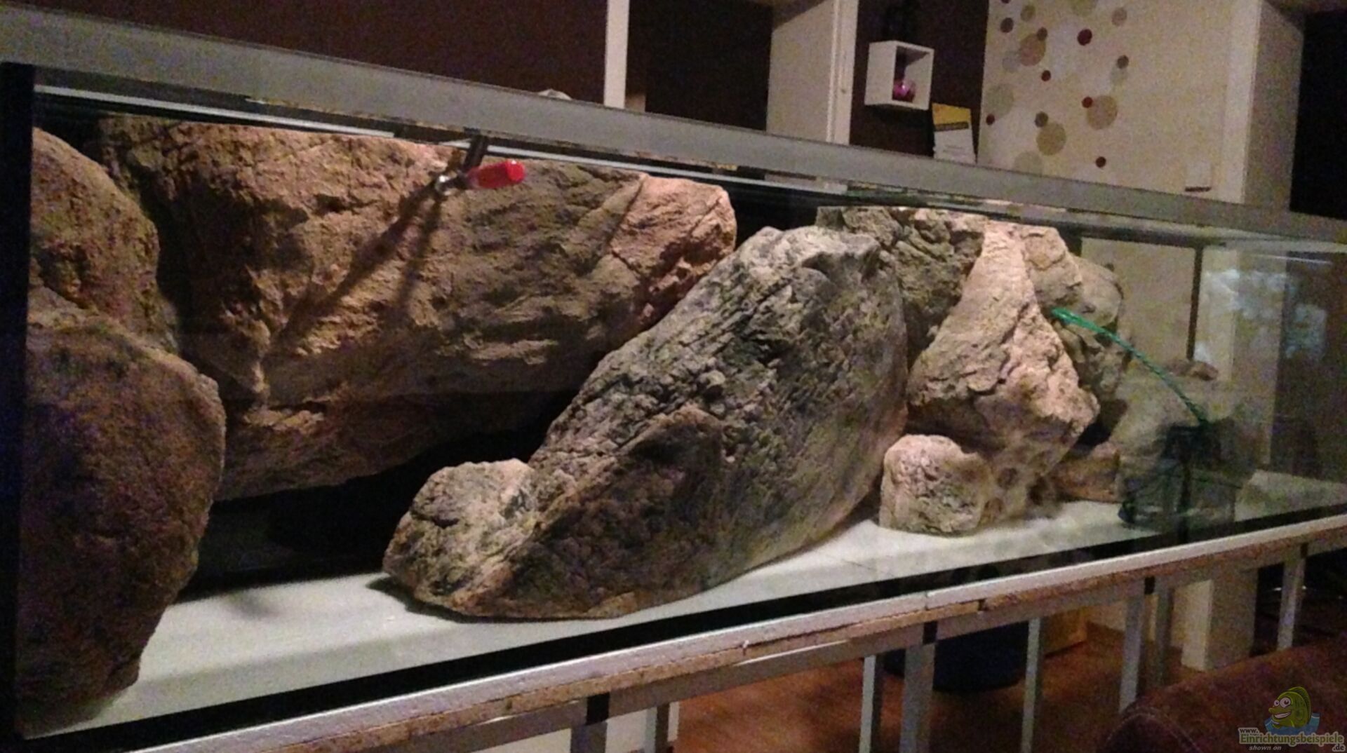 Ich hab anstatt der üblichen Einrichtung für Mbuna mit Aufhäufungen von Steinen, eine Einrichtung mit Modulen von Back to Nature und AfStyle.eu auf 2, 50 m verteilt gewählt.