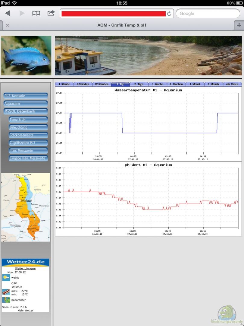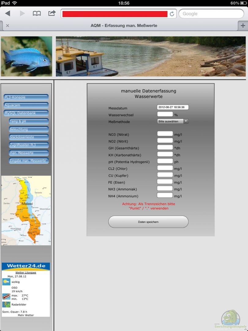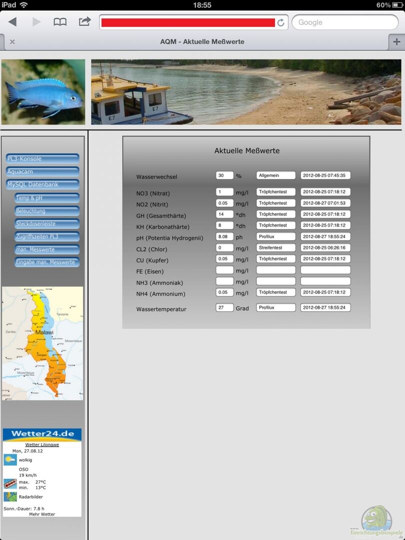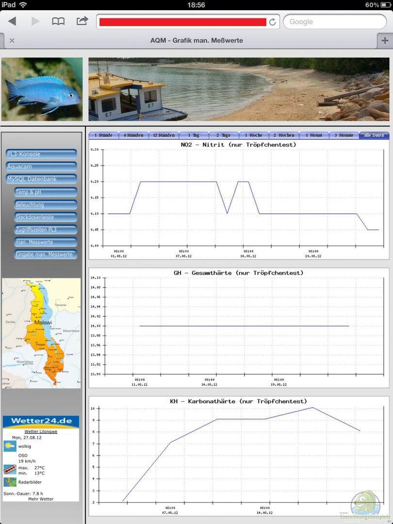 Temperatur und pH werden durch den Profilux gemessen und für den Rest kommt ein Sera-Testkoffer zum Einsatz.