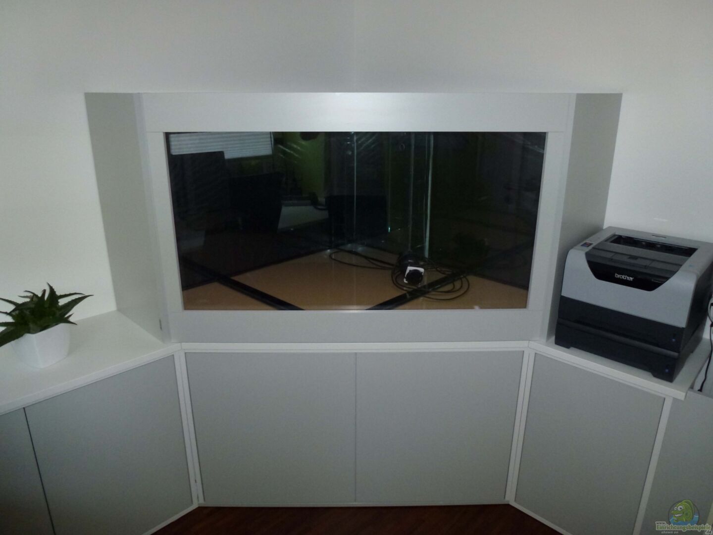 Nach etlichen Diskussionen mit allen Familienmitgliedern und Modelaufbauten in Orginalgrö??e wurde der neue Standort, je nach Sichtweise, gefunden bzw. bestimmt. Das neue Aquarium wird also in meinem Arbeitszimmer sein neues Zuhause finden. Um es möglichst optimal zu integrieren und den Raum bzw. die Möbel aus einem Guss wirken zu lassen, entschieden wir uns für eine Ma??anfertigung der Büroeinrichtung, Aquariumunterschrank inkl. Verkleidung.