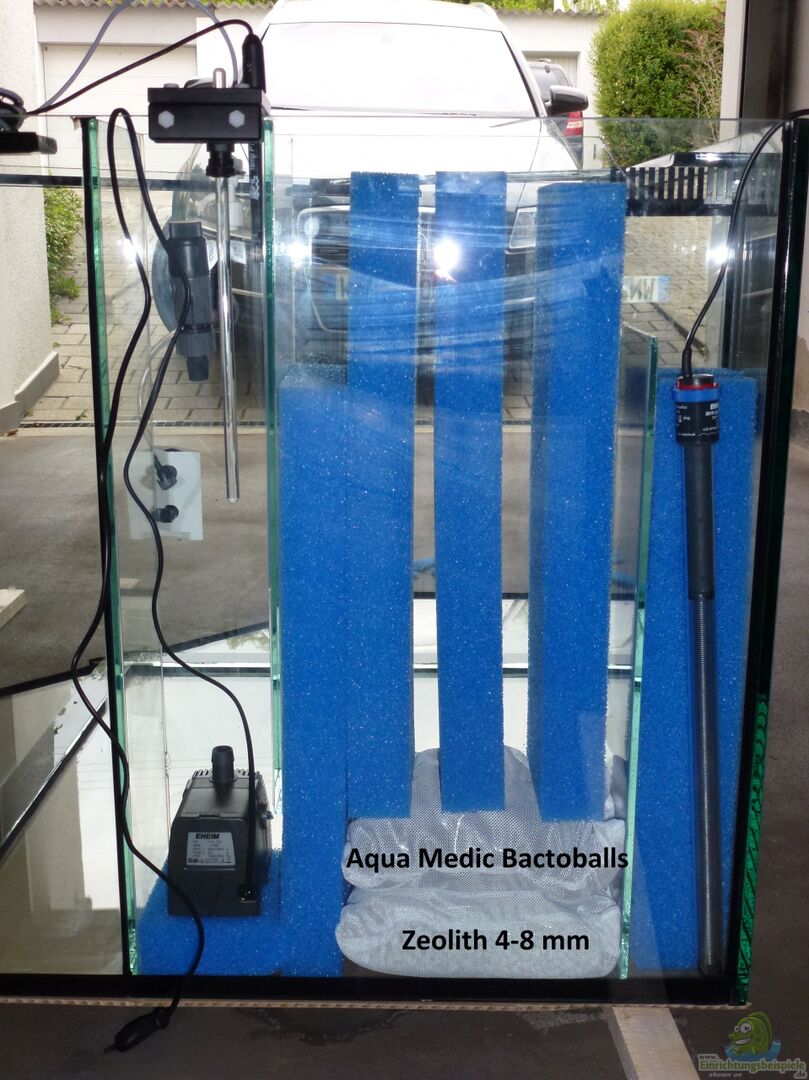 Auf die Filterwatte und Filtermatte fein, habe ich jetzt erst einmal verzichtet. Der Korallenbruch steht noch aus.