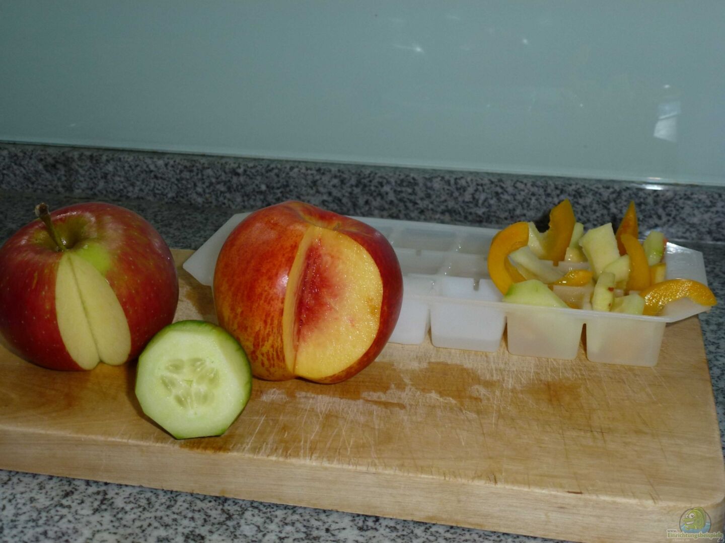 Ich füttere ohne feste Zeiten auch der Fastentag kann variieren. Gefüttert wird nur so viel, wie die Fische in 1 Minute verdrücken können. Um die Fische an die Bewegungen vor dem Aquarium zu gewöhnen, wird zur Zeit nach Bedarf (zwei, drei Flakes) zwischendurch gefüttert.