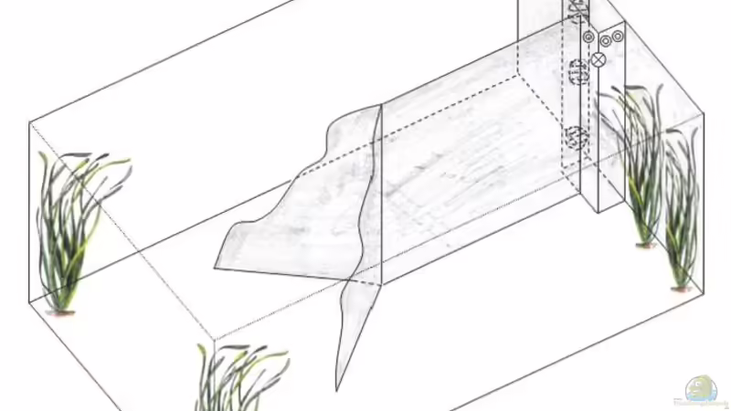 In der ´Kammer´ befinden sie die zu und Ablaufe der Aussenfilter, sowie die Heizung und die Stromungspumpe, somit ist im Aquarium keine Technik zu sehen. Durch die festen Trennwende ergibt sich ein optimaler Stromungsverlauf, mit einem gro??em Schwimmraum im Vordergrund, und eben den Rückzugsmöglichkeiten in den ´Ecken´.