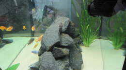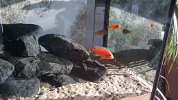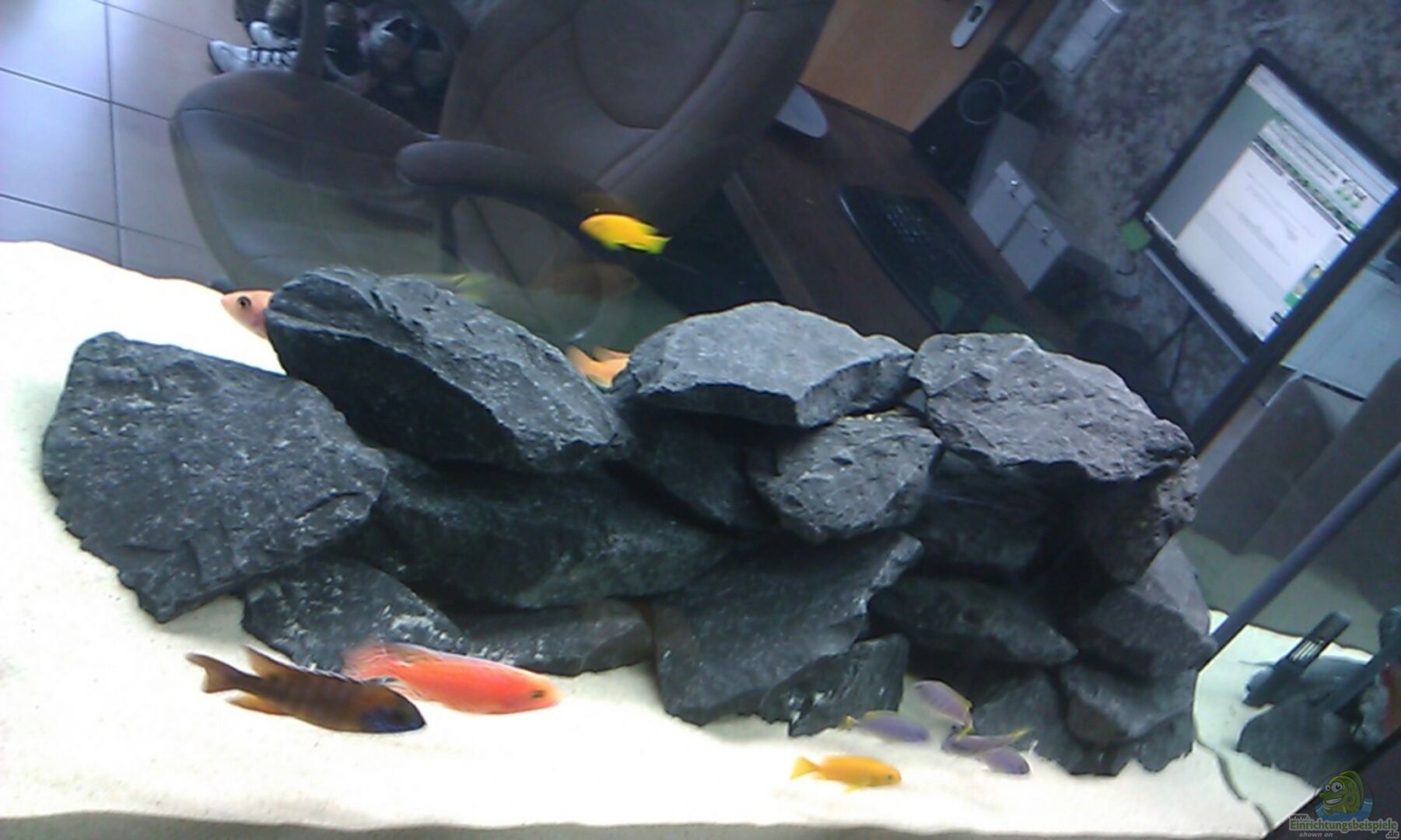 Die Beckenlänge ist mit 100cm aber für meine Begriffe arg klein, die Aulonocara und Synodontis bräuchten locker einige cm mehr. Und Aquarien als Raumteiler bringen einige Nachteile für die Fische mit, verstecken geht hier nun gar nicht mehr. Ich denke, dass sich deine Fische bei mehr Versteck- und Rückzugsmöglichkeiten wohler fühlen. Momentan können sie sich eher nicht aus dem Wege gehen.
