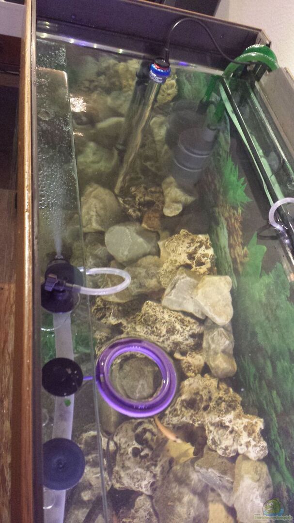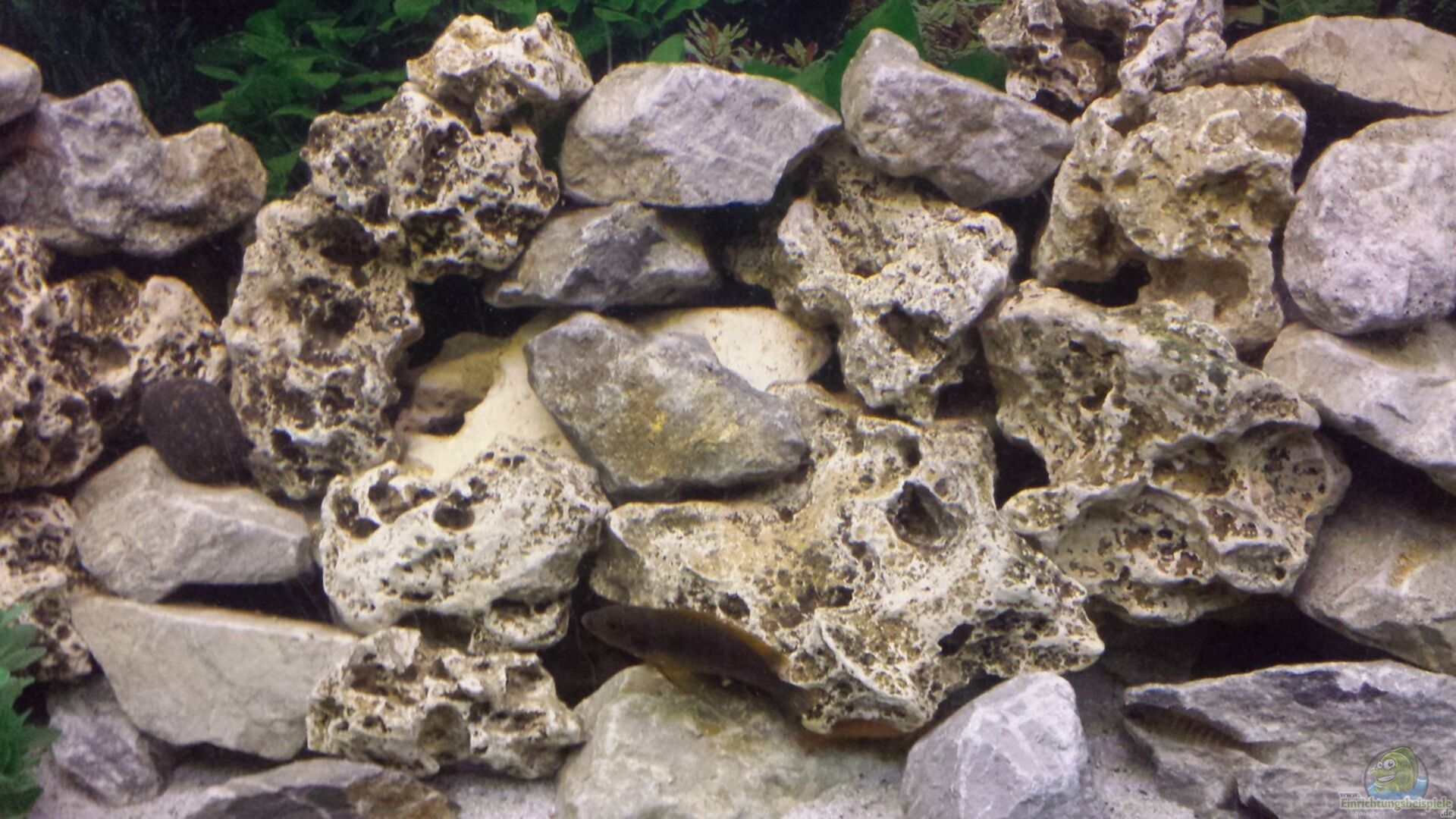 Diese wurden frei aufeinander gelegt / verkantet und wie auf den Bildern des leeren Beckens zu erkennen ist. Diverse Höhlen am Bodengrund die wieder und wieder mit Höhlen nach oben hin aufgebaut wurden sollen den Malawis genug rückzugs Möglichkeiten geben.