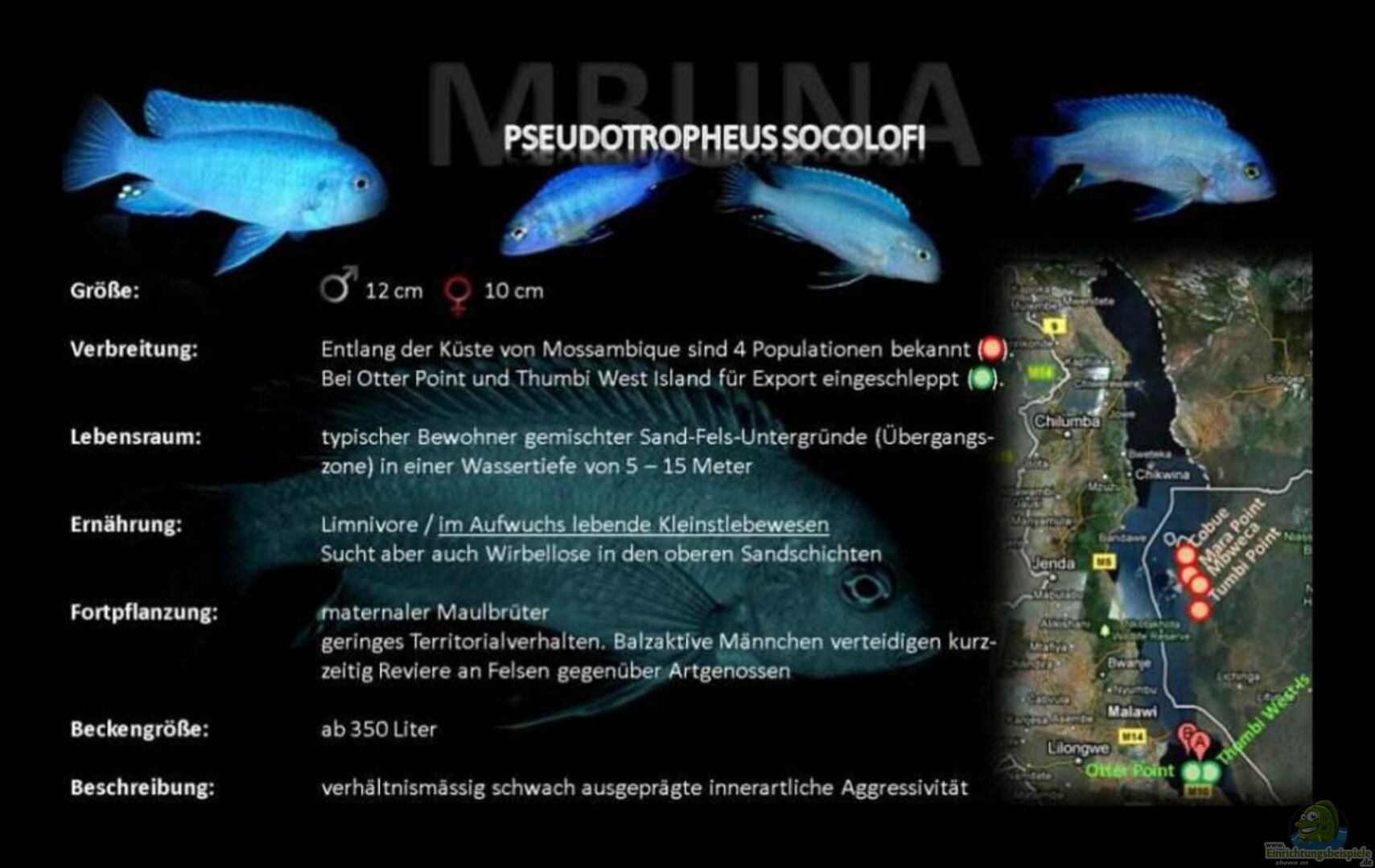 1M/3W Pseudotropheus socolofi (Eisblauer Maulbrüter)
