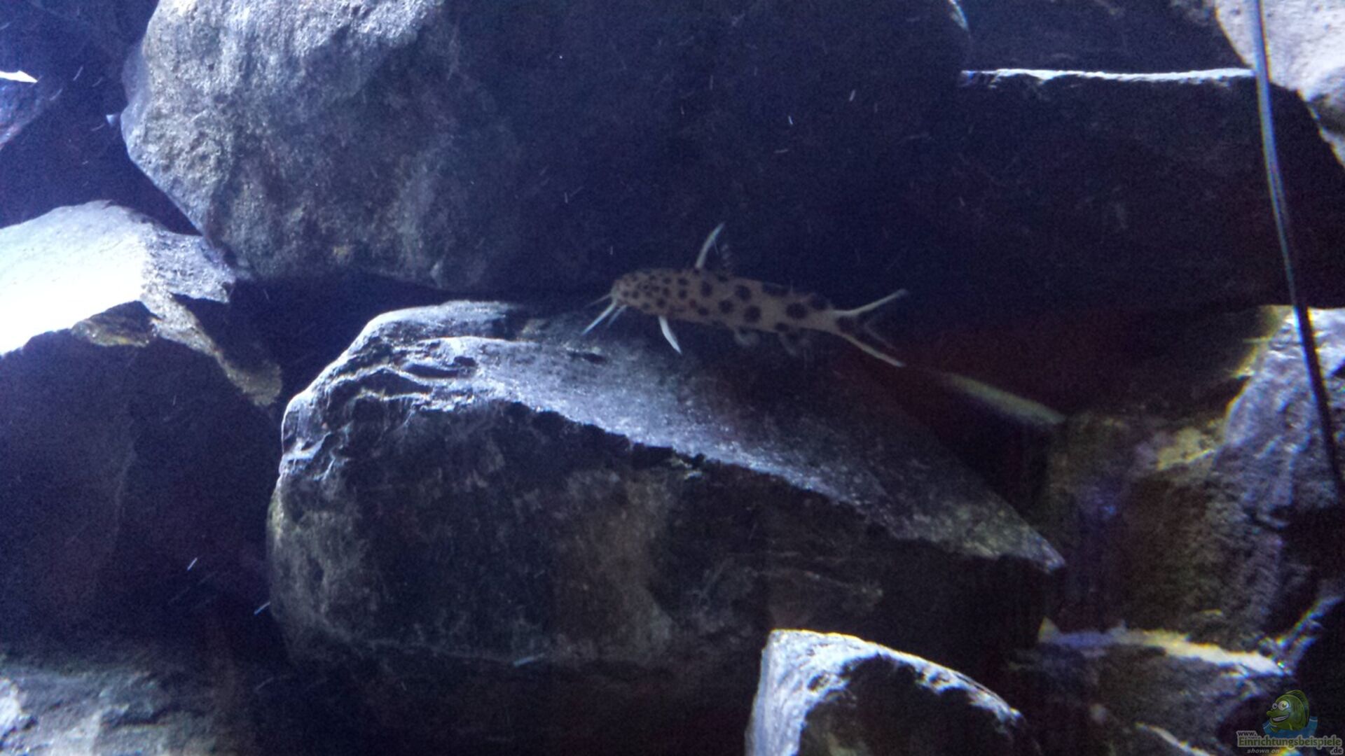Da die NonMbunas mehr Schwimmraum benötigen als die Mbunas ich aber ein "leeres" Becken nicht so schick finde habe ich versucht bei dem Becken nicht zu viel Platz mit den Steinhaufen weg zunehmen. Die Höhe erreicht er eigentlich wirklich erst kurz vor der Rückwand, was man im Blick durch die Seitenscheibe ziemlich gut erkennt. Trotzdem sind natürlich auch viele Höhlen und Nischen entstanden die die Welse zur Zeit schon kräftig erkunden.