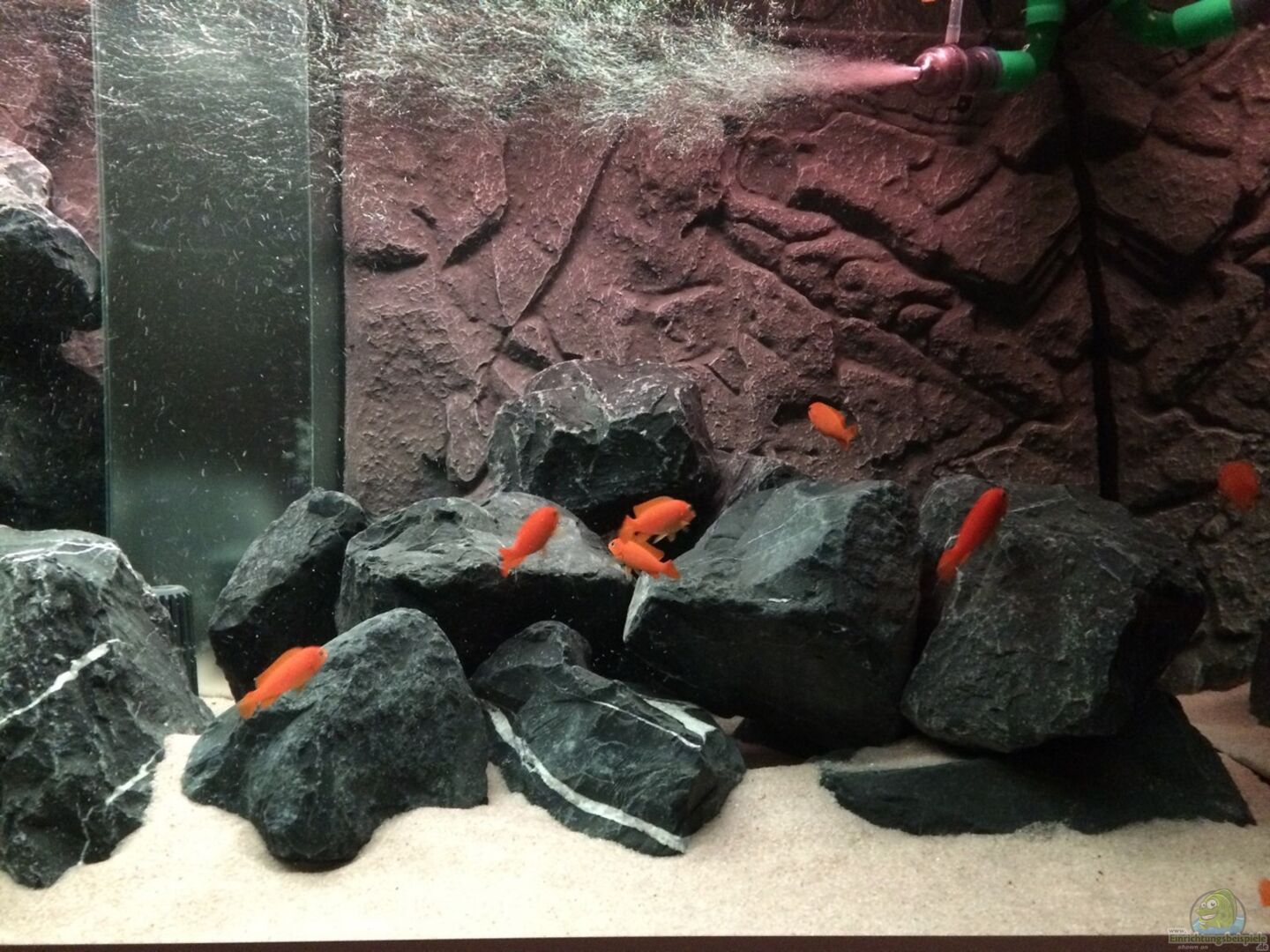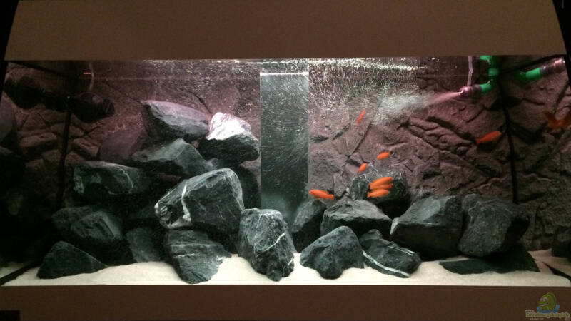 Aufgrund der Grö??e von meinem AQ, habe ich mich für ein Artbecken mit Pseudotropheus Saulosi entschieden. Die wunderschöne Farbgebung der Tiere (goldgelb/orange, bzw. leuchtend blau) haben mich fasziniert.