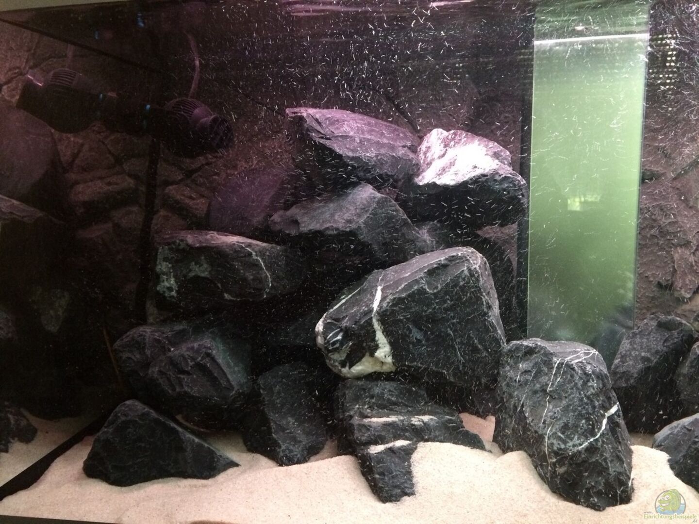 (Um etwas "grün" und pflanzliches Leben hineinzubringen, hätte man sicherlich Anubias barteri einsetzen können, aber mein AQ sollte soweit wie möglich naturgetreu werden).