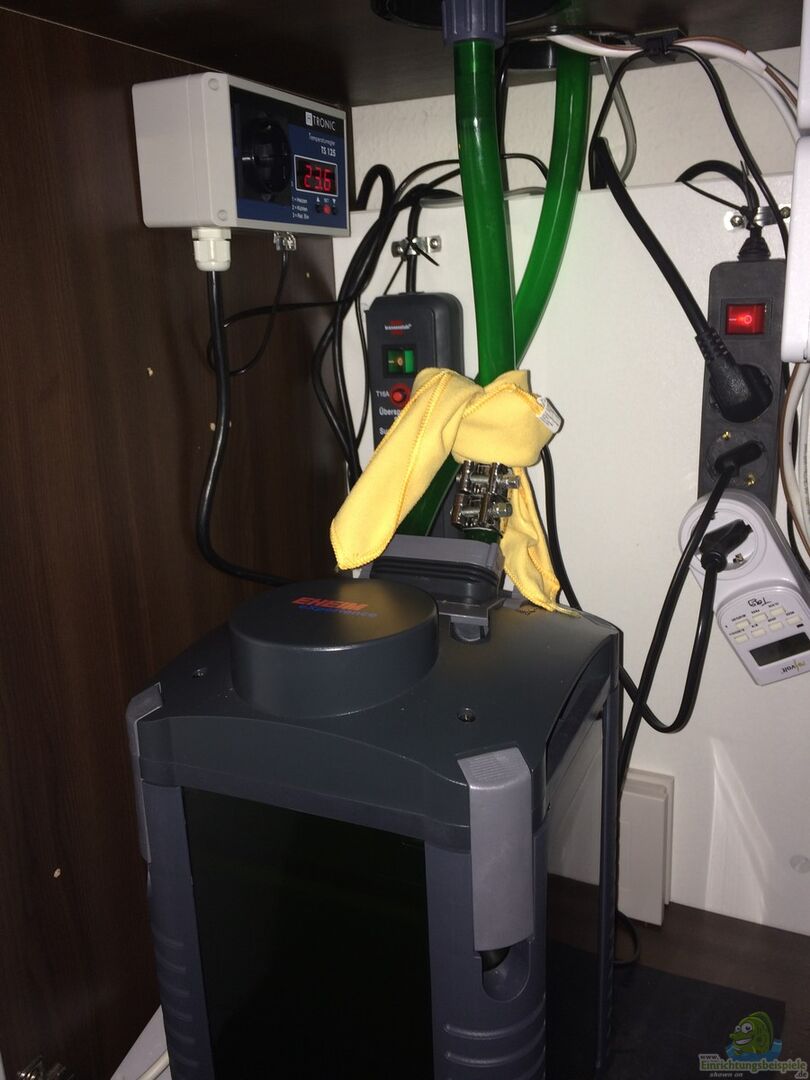 Die Filterung erfolgt über einen Au??enfilter von dem Hersteller Eheim; Typ "Experience 350". Dieser hat eine Pumpenleistung von rund 1.000 Liter / min und sorgt damit für eine ausreichende Umwälzung des Wassers.