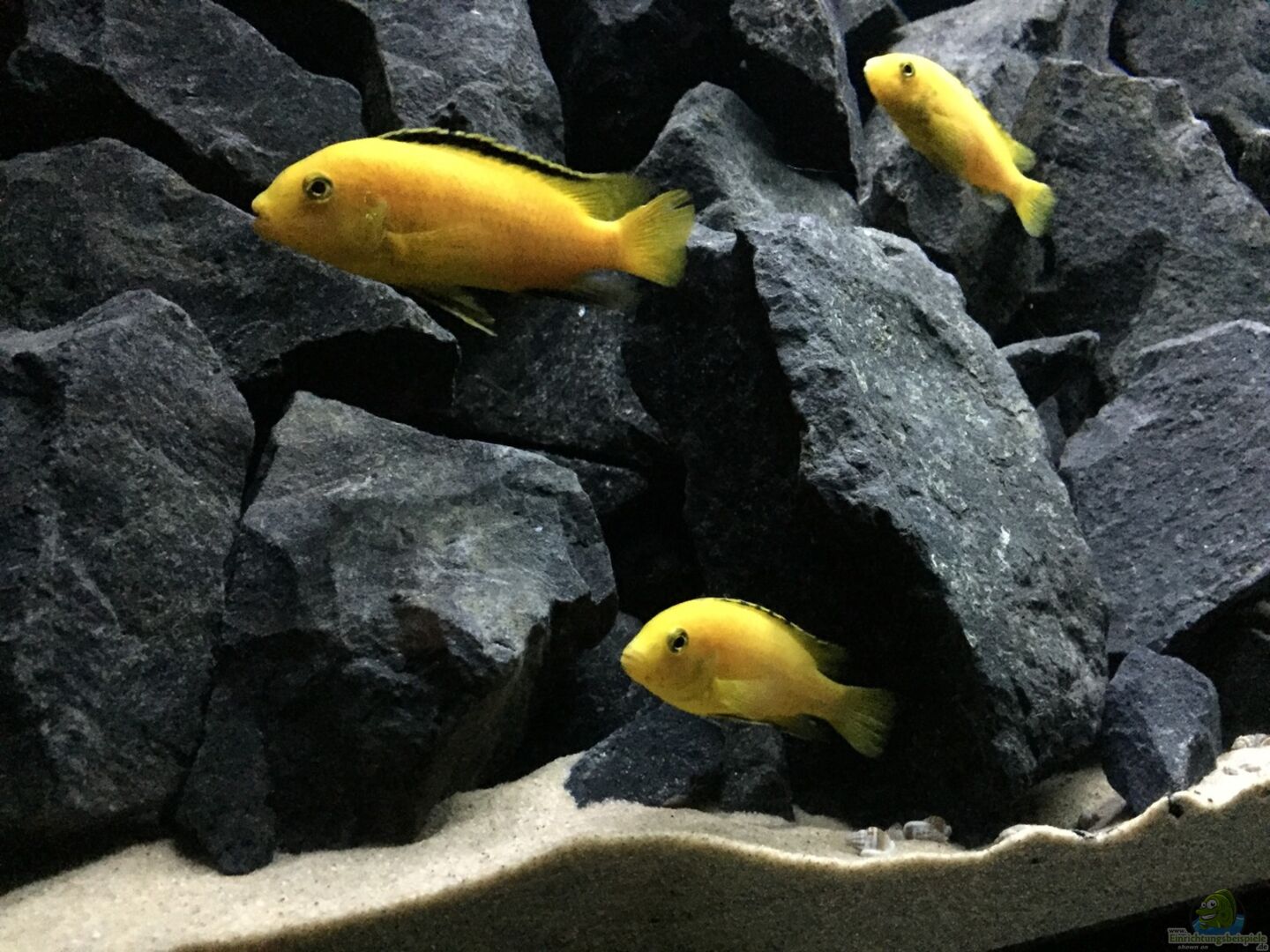 - bei den Labidochromis caeruleus hat sich Nachwuchs eingestellt :D