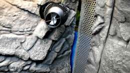 Auslauf über PVC Verrohrung; der Auslauf ist so angebracht, das die Oberfläche gut bewegt wird