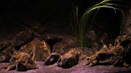 Dabei sto??en sie mit ihrem Maul tief in den Sand. Das Material wird aufgenommen und Futterpartikel (Kleinstlebewesen) werden herausgefiltert. Die Männchen sind nicht sehr territorial. Zur Laichzeit kann es aber durchaus vorkommen, das sie ein wenig agressiver werden.Ssowohl juvenile Männchen als auch nicht paarungsbereite Weibchen werden aus dem Revier (welches manchmal recht gro?? ist) vertrieben. Ich habe mich für eine Gruppenhaltung entschieden, somit kann ich das soziale und natürliche Verhalten besser kennen lernen. Für die Haltung werden mindestens 400L empfohlen. Es sollte eine ??bergangszone nachgebildet werden, indem einzelne grö??ere Felsbrocken das Becken schmücken. Hinter diesen Felsen suchen meine Placidos in der Nacht gern Schutz. Es sollten viele freie Sandflächen belassen werden, die diese Gräber zur Futtersuche benötigen.