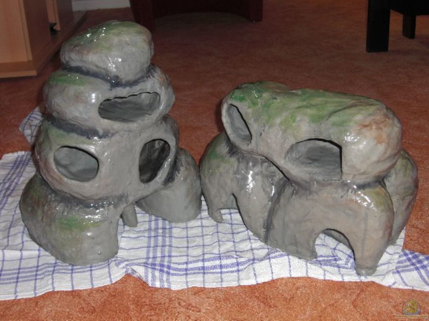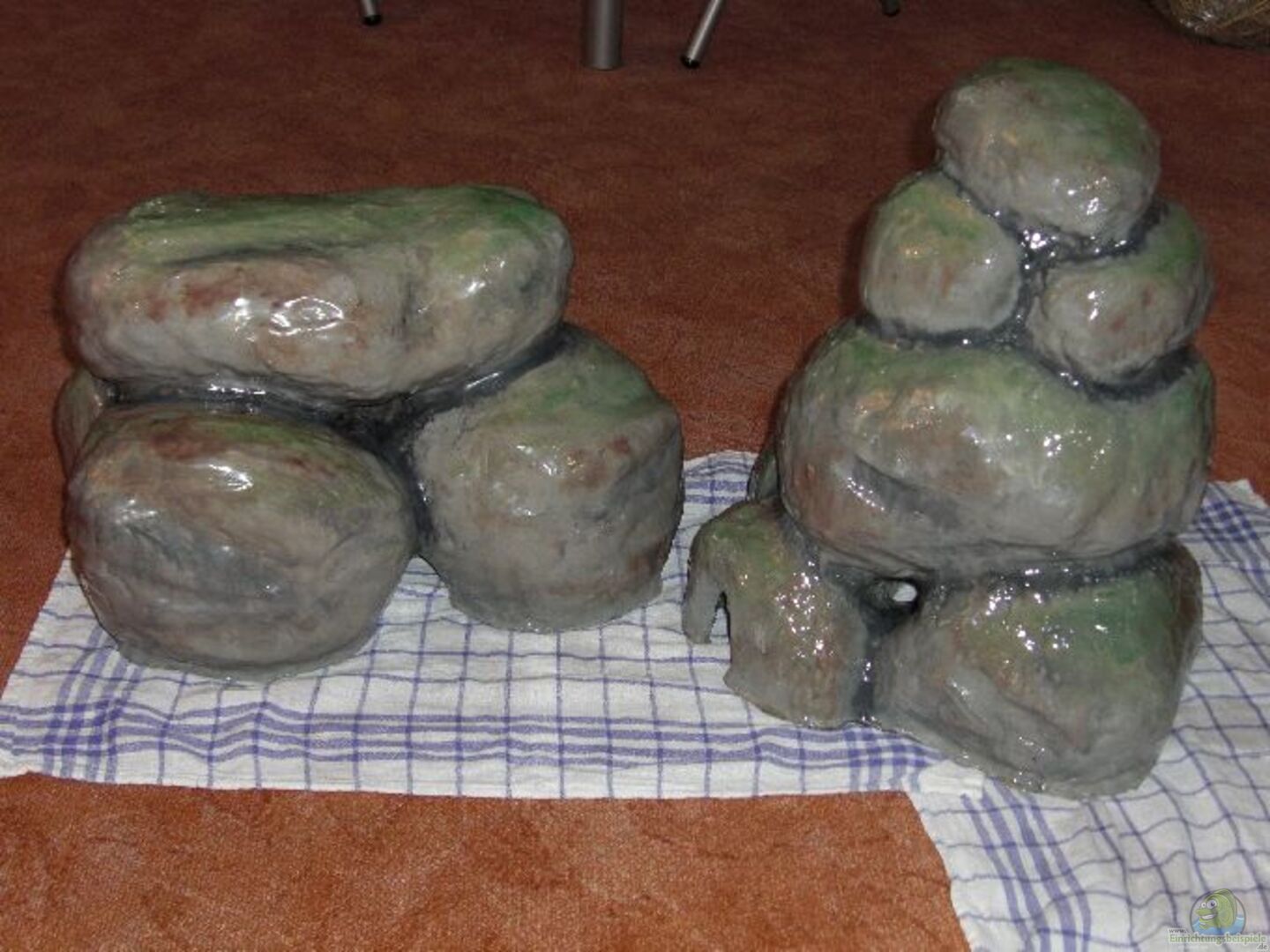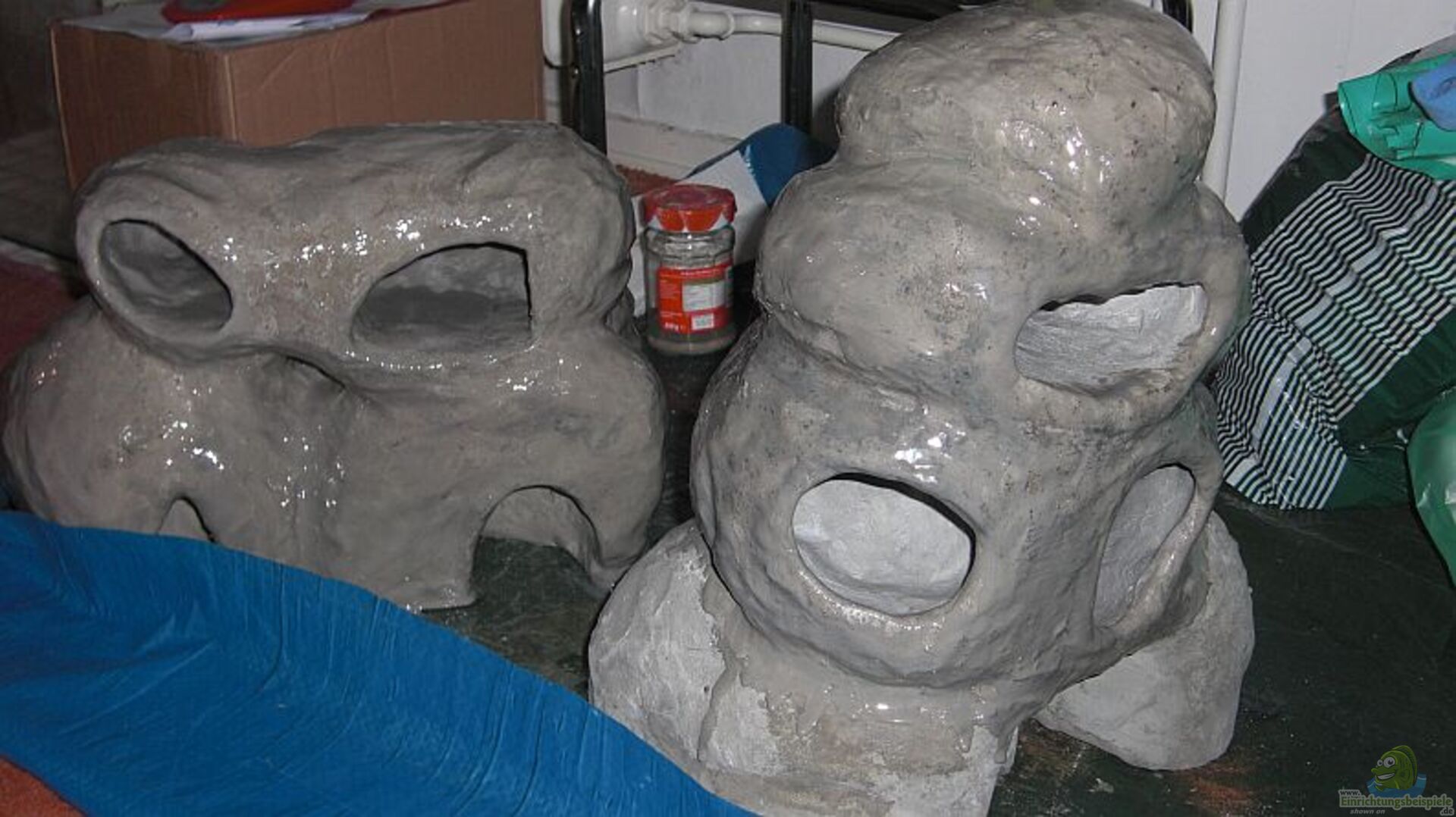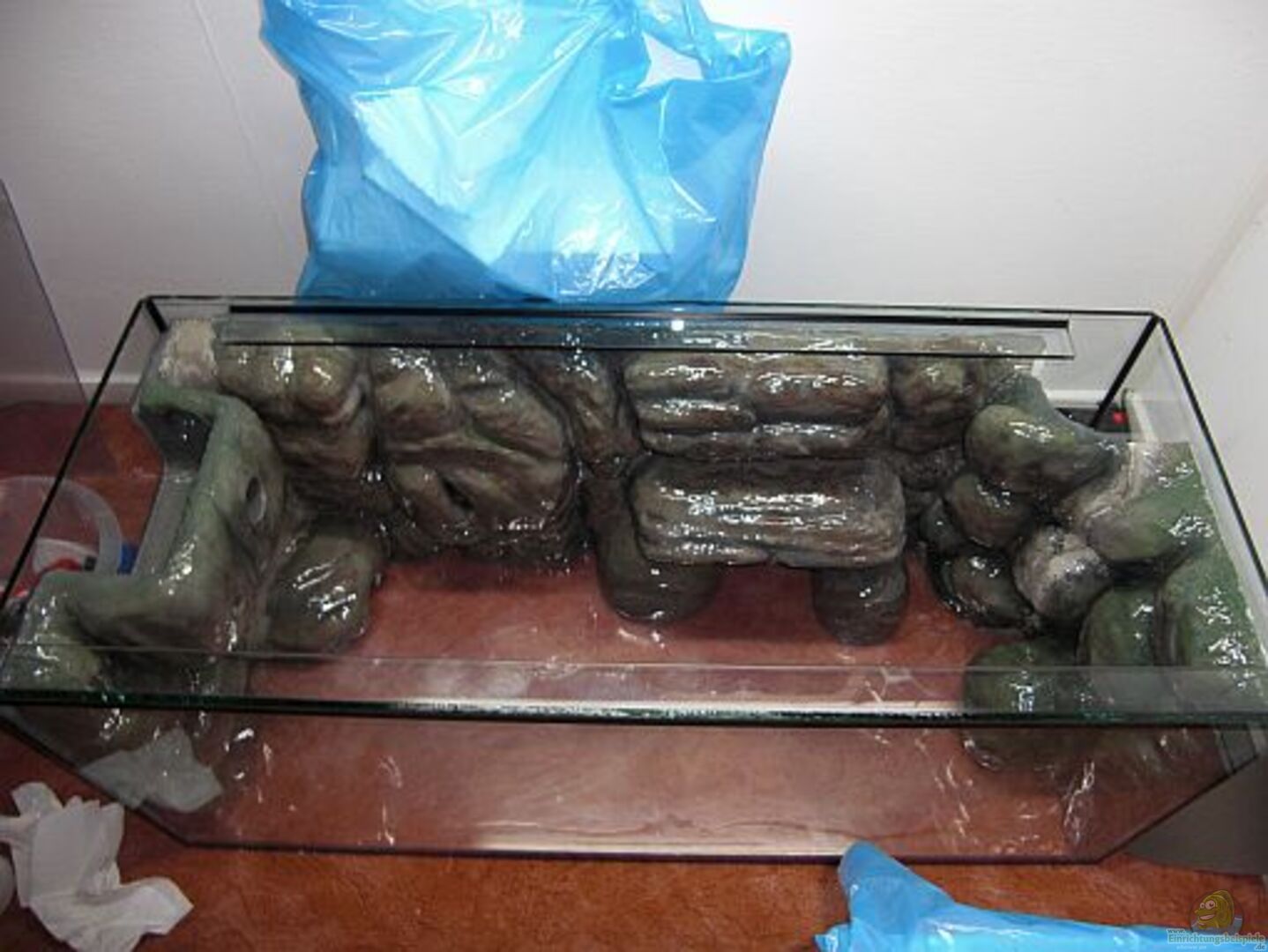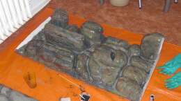 selbgebaute Aq- Rückwand und Aq- Seitenwände mit Höhlen